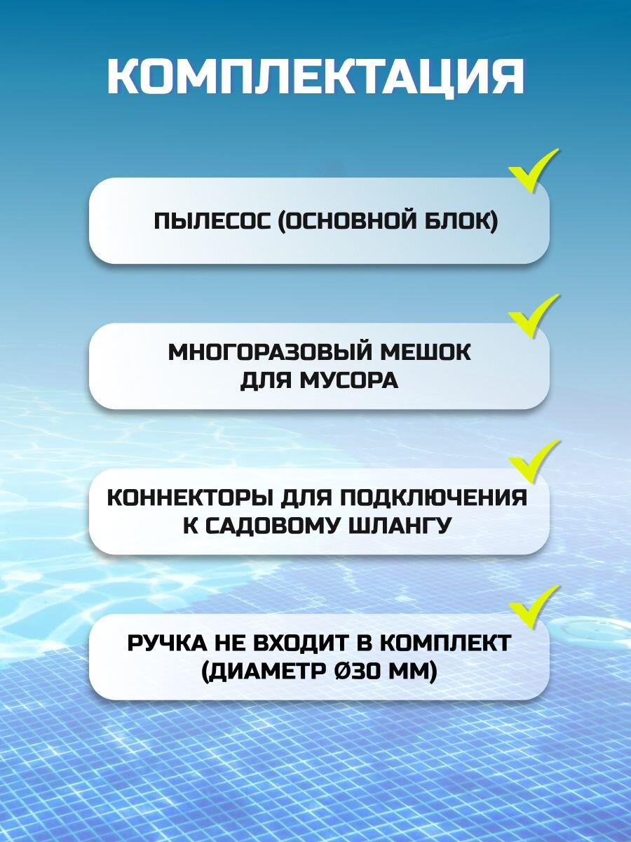 - Маневренность: 4 колеса обеспечивают легкое перемещение по дну бассейна.
