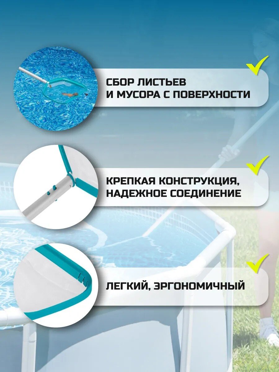 Сачок Bestway AquaScoop Deluxe - это идеальное решение для тех, кто ценит чистоту и порядок в своем бассейне. Использование этого аксессуара позволит сократить время на уборку и наслаждаться отдыхом без лишних хлопот. Кроме того, благодаря его универсальности и прочности, это выгодное вложение в долгосрочную эксплуатацию. Сачок поможет поддерживать бассейн в идеальном состоянии, что, в свою очередь, продлит срок службы фильтрационной системы и сэкономит средства на дополнительных расходах по обслуживанию. Выберите качество и надежность, выбирайте Bestway AquaScoop Deluxe!