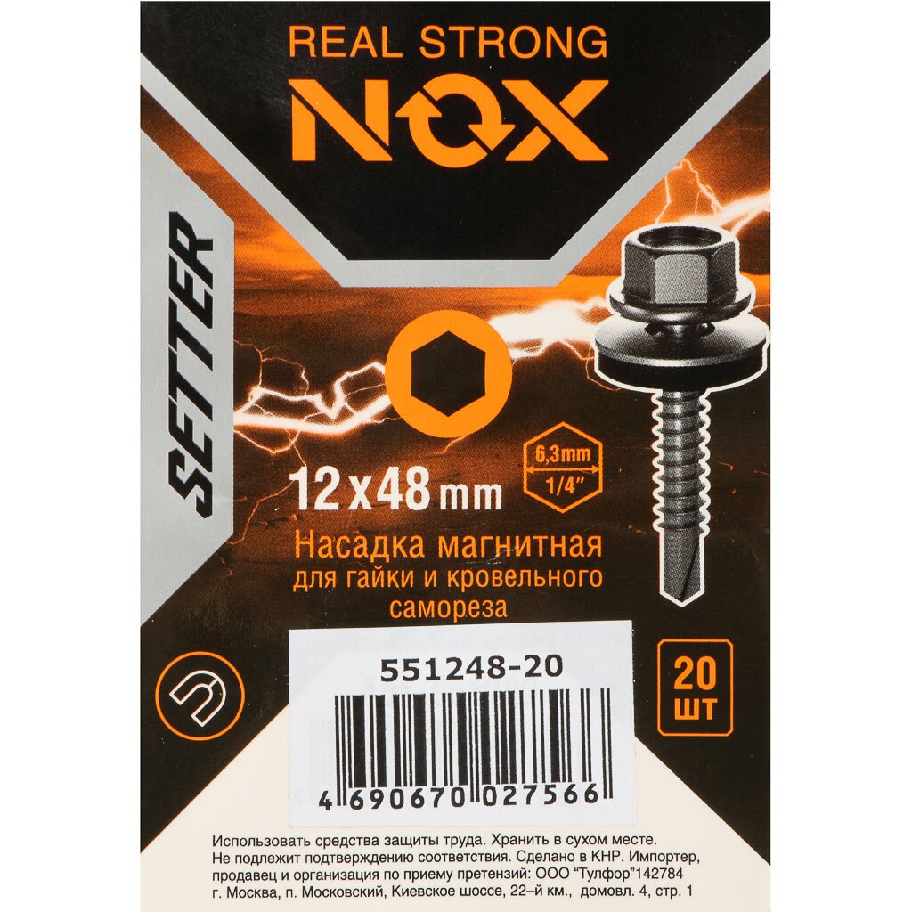 Ключ-насадка для кровельных саморезов Nox 12х48 мм — точная фиксация, магнитный адаптер, 20 шт. в наборе для быстрой и надёжной сборки кровли.