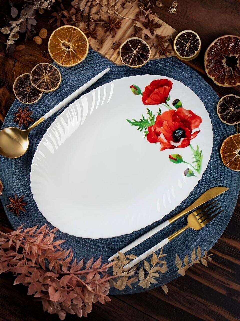 Овальное блюдо из стеклокерамики Daniks «Алый мак», 30,2 см — эффектная сервировка, прочность и универсальность для дома, дачи и подарка.