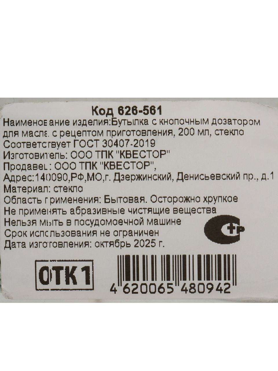 Вы можете приобрести «Бутылка для масла, стекло, 200 мл, с кнопочным дозатором, 626-561» и другие товары в нашем интернет-магазине в Брянске по низким ценам и с бесплатным самовывозом.