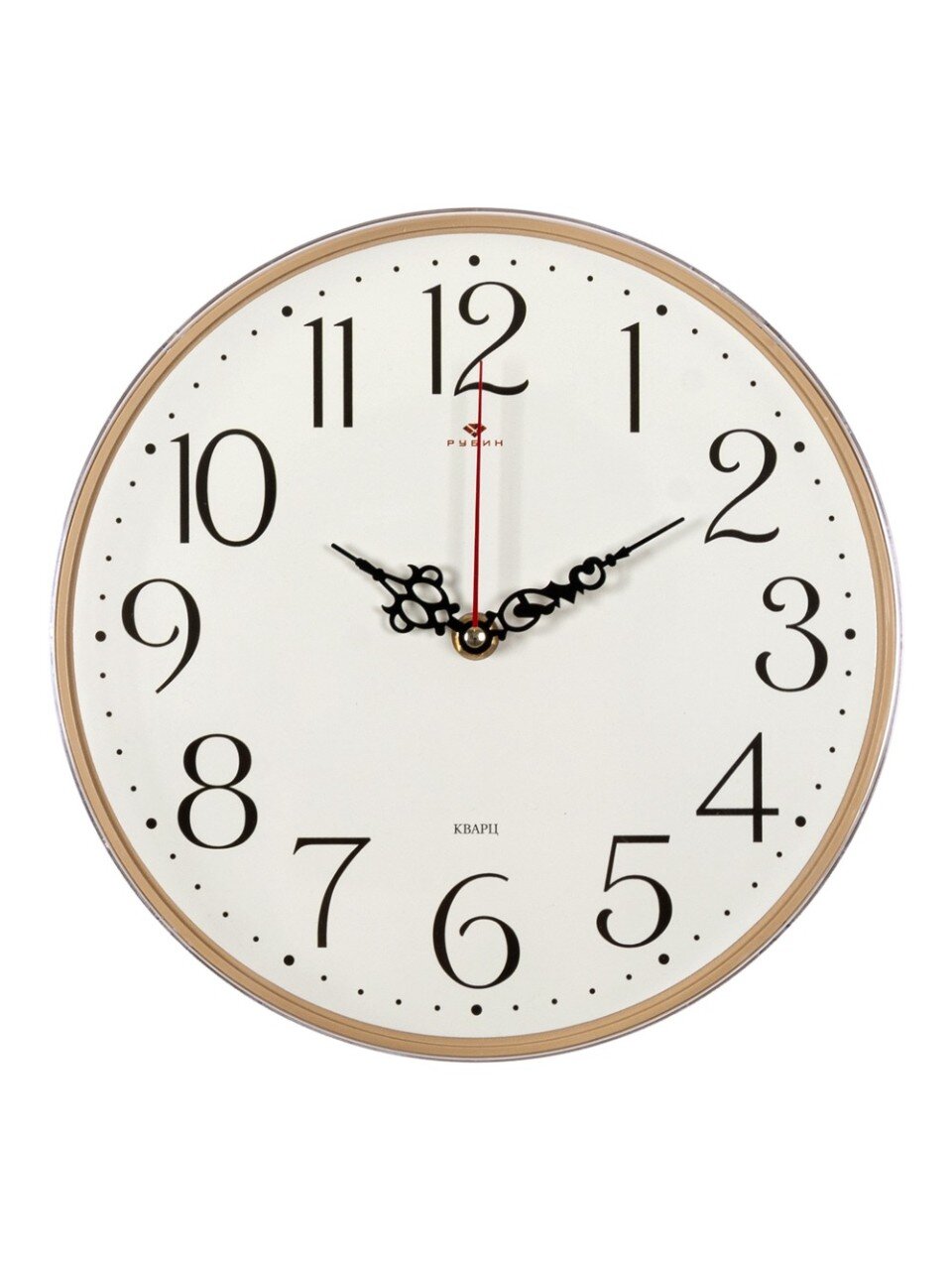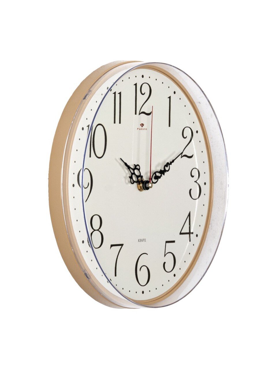 Настенные кварцевые часы Рубин 25 см: стильная классика для дома и дачи, тихий ход, точность и универсальный бежевый корпус — идеальный выбор для уюта без лишних затрат.