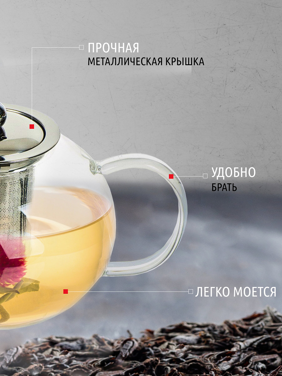 Чайник заварочный изготовлен из высококачественного стекла и снабжен крышкой. Стеклянный корпус и фильтр обеспечивают легкую очистку. Лаконичный дизайн изделия прекрасно впишется в любой интерьер.