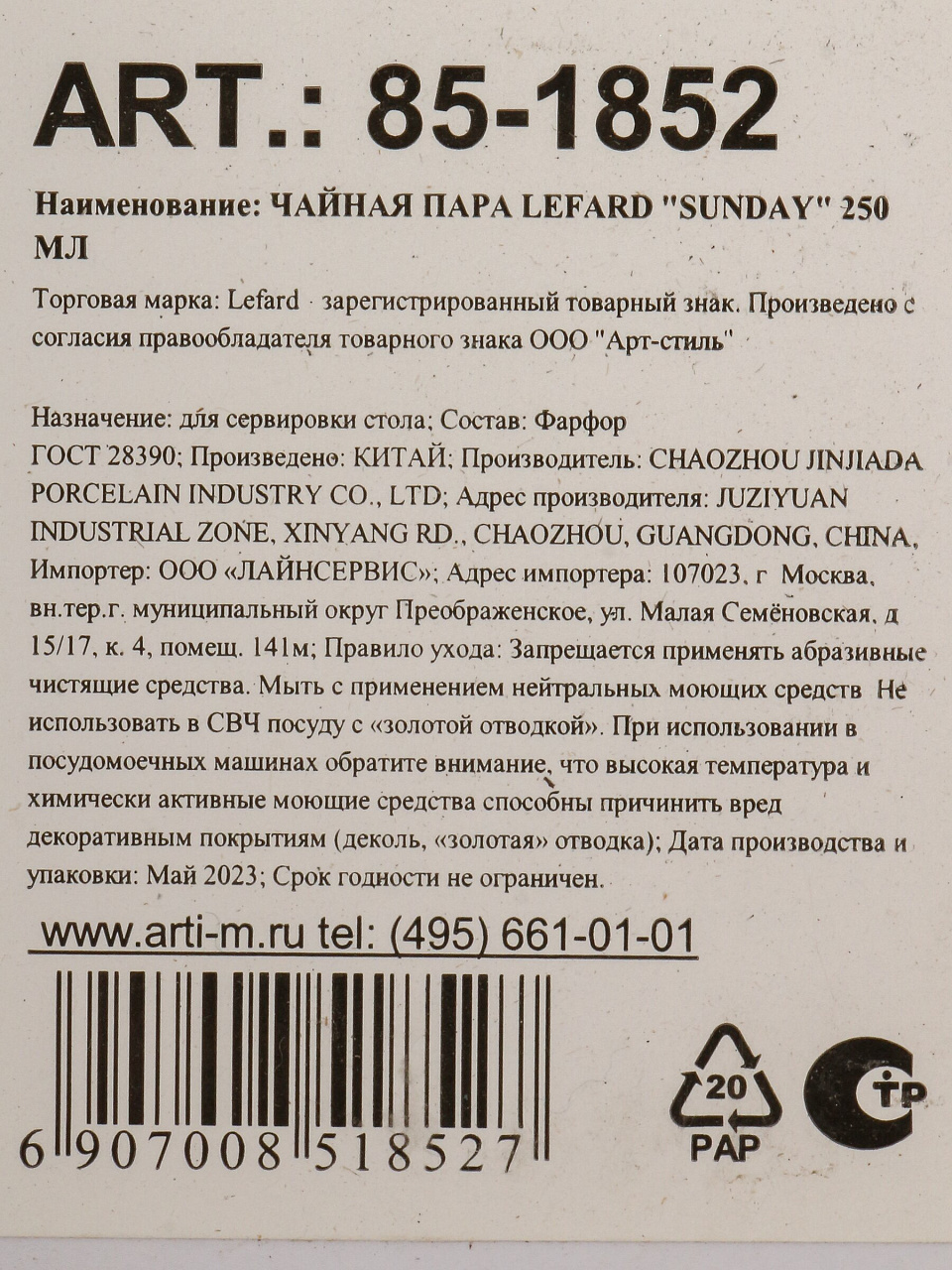 Вы можете приобрести «Чайная пара фарфор, 2 предмета, на 1 персону, 250 мл, Lefard, Sunday, 85-1852, подарочная упаковка» и другие товары в нашем интернет-магазине в Астрахани по низким ценам и с бесплатным самовывозом.