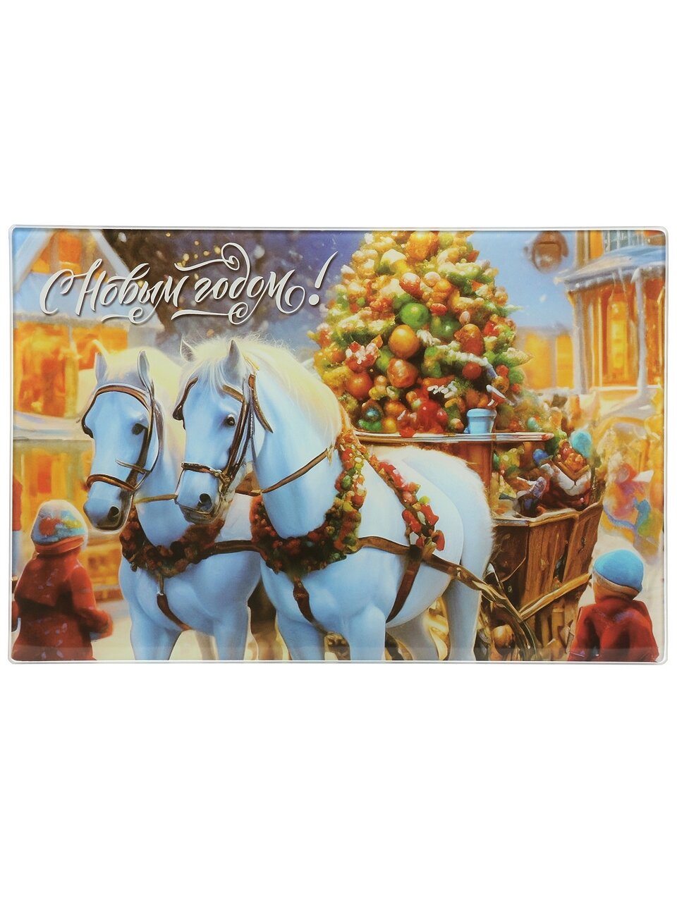 Размер 20х30 см, материал — закалённое стекло с декоративным рисунком символа года, подходит для нарезки и сервировки.