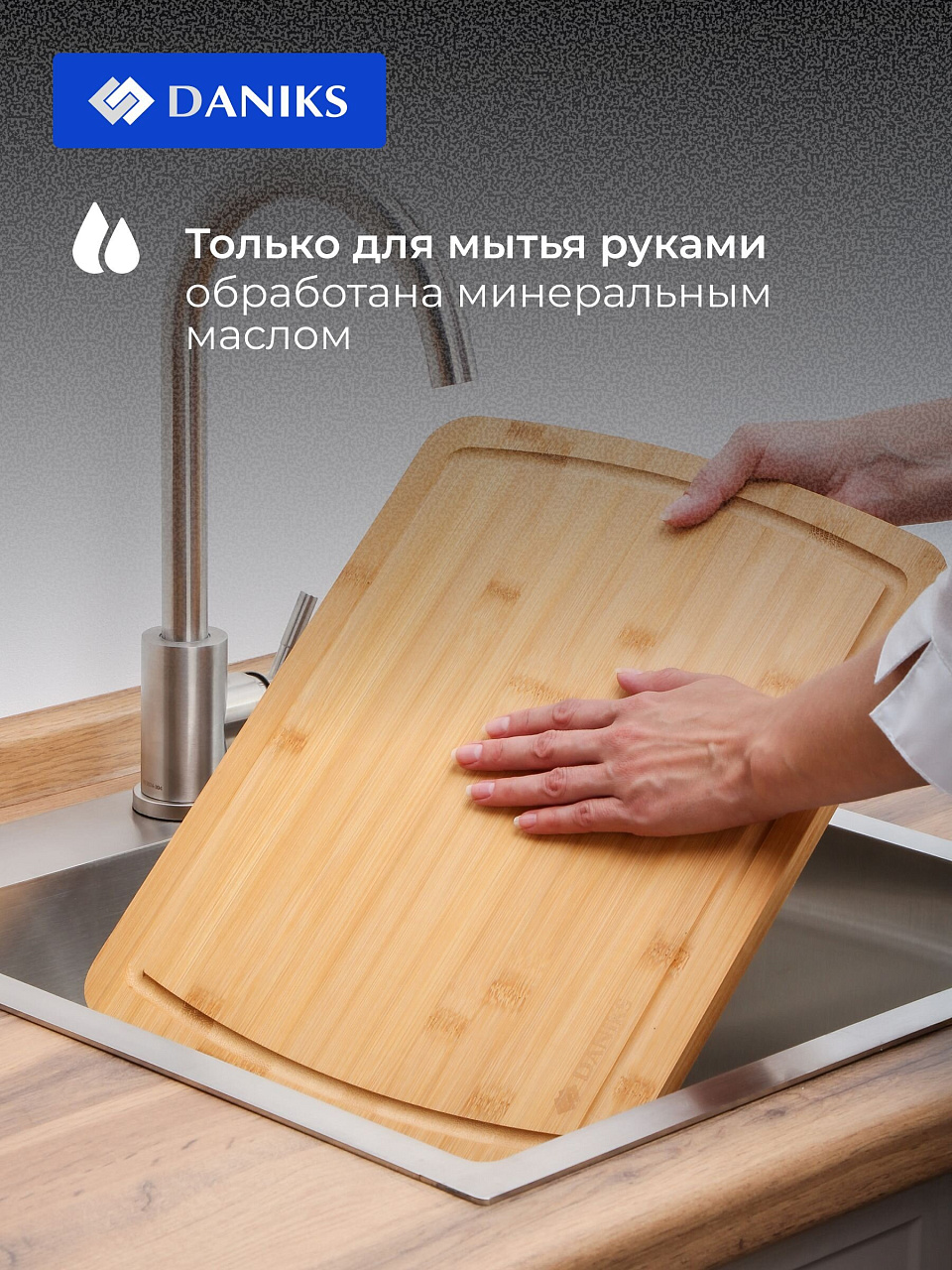Разделочная доска из бамбука - это незаменимый аксессуар на любой кухне. Она изготовлена из натурального бамбука, обеспечивающий длительный срок эксплуатации изделий. В отличие от других досок (пластик, бук или береза) эта доска не только легко моется и не скапливает бактерии, но и не расслаивается при регулярном использовании. Доска покрыта маслом для защиты и сохранности изделия.
