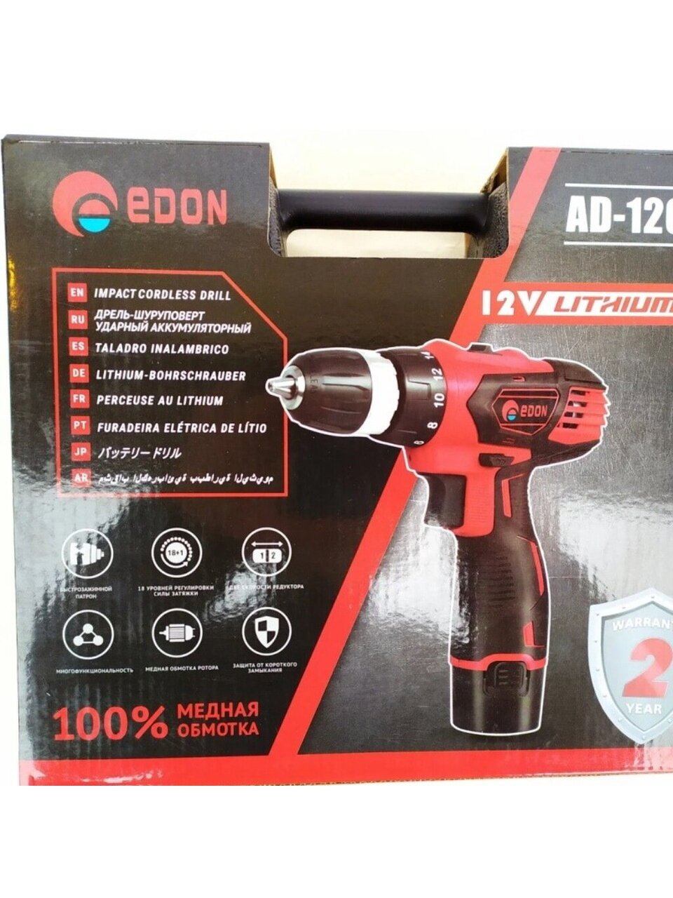 Аккумуляторный шуруповерт EDON AD-12CA идеально подходит для работы с деревом, металлом и пластиком: для сверления небольших отверстий и завинчивания / отвинчивания крепежа дома, в саду и мастерской. Компактный размер инструмента EDON AD-12CA позволяет работать в труднодоступных местах, а 18-позиционный соединитель обеспечивает высокую точность затяжки с максимальным моментом затяжки 23 Нм + 1 для сверления. Прочная двухскоростная металлическая коробка передач обеспечивает высокий крутящий момент 23 Нм и оптимальную передачу мощности двигателя. Электронный триггер отвертки EDON AD-12CA позволяет регулировать частоту вращения двигателя в зависимости от степени надобности. Аккумуляторный шуруповерт EDON AD-12CA оснащен быстродействующим зажимным патроном с функцией автостопа и автоматической блокировкой шпинделя, обеспечивающей быструю смену сверла.