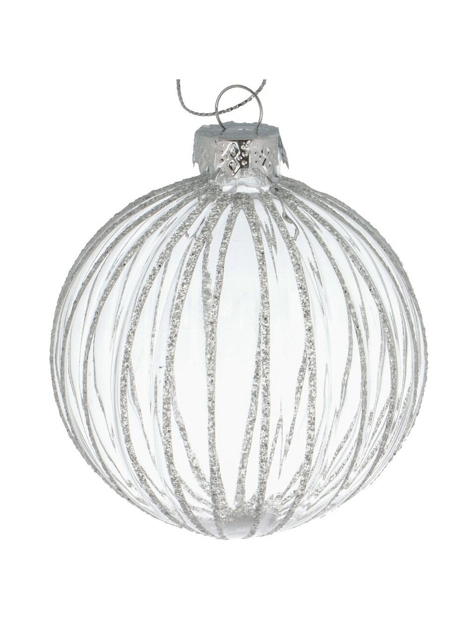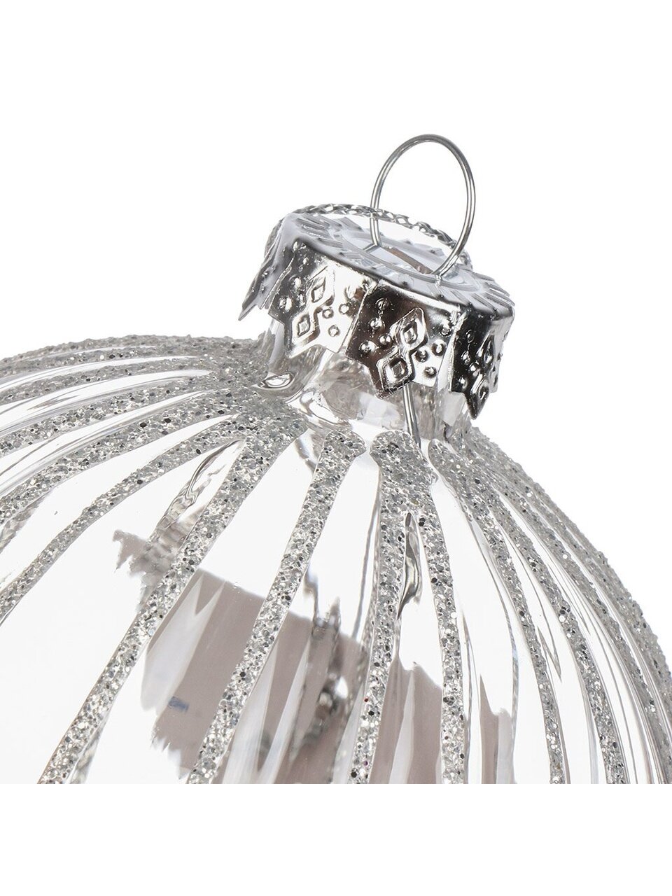 Елочный шар Грани 8 см из прозрачного стекла с серебристым блеском — стильный акцент для новогодней елки, подарка или декора дома за разумную цену.
