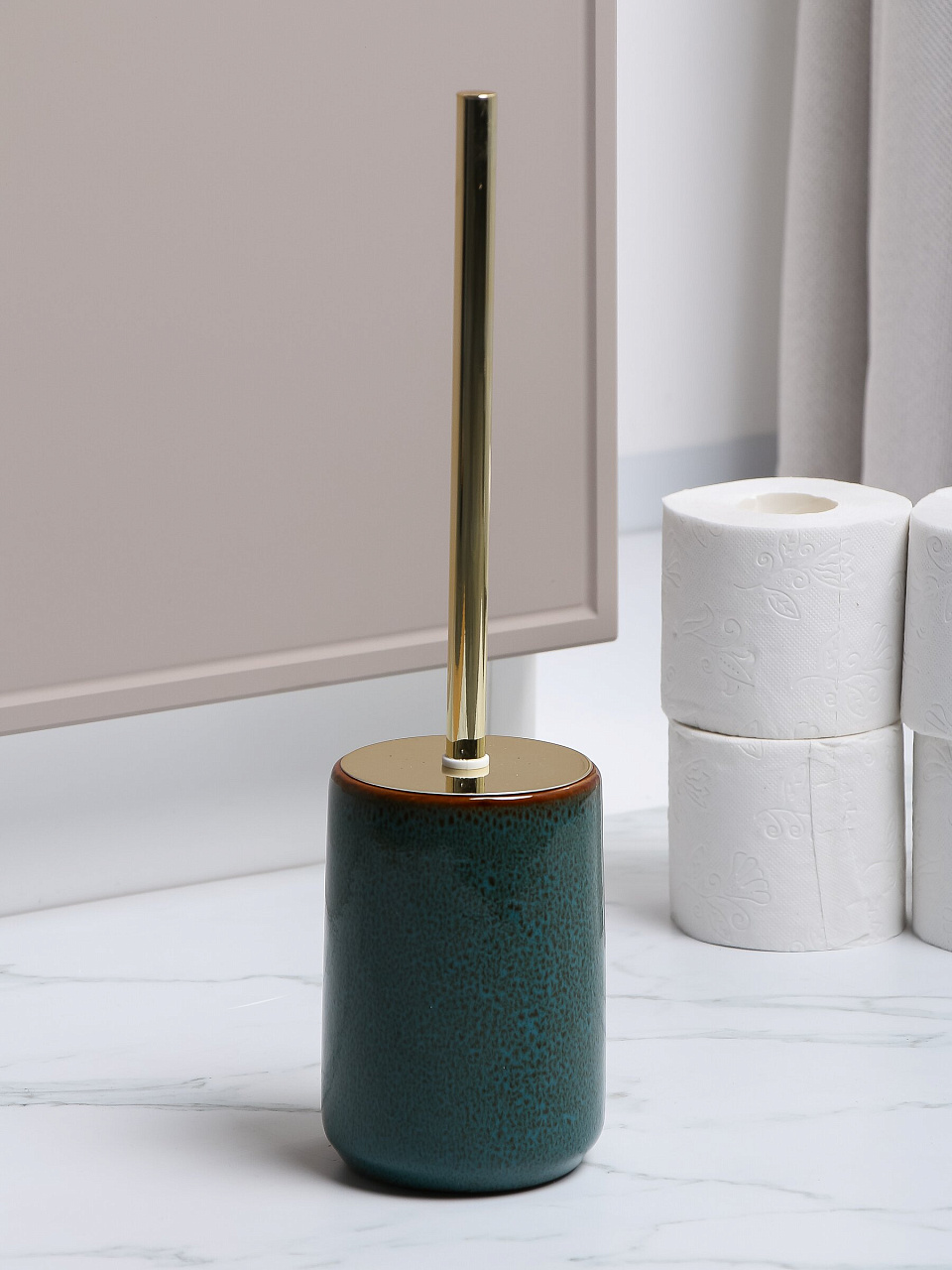 Эргономичный напольный ерш для туалета из керамики «Малахит глянцевый» Y4-9877 — стильное решение для чистоты санузла. Идеально подходит для дома, дачи и подарка, легко впишется в современный интерьер.