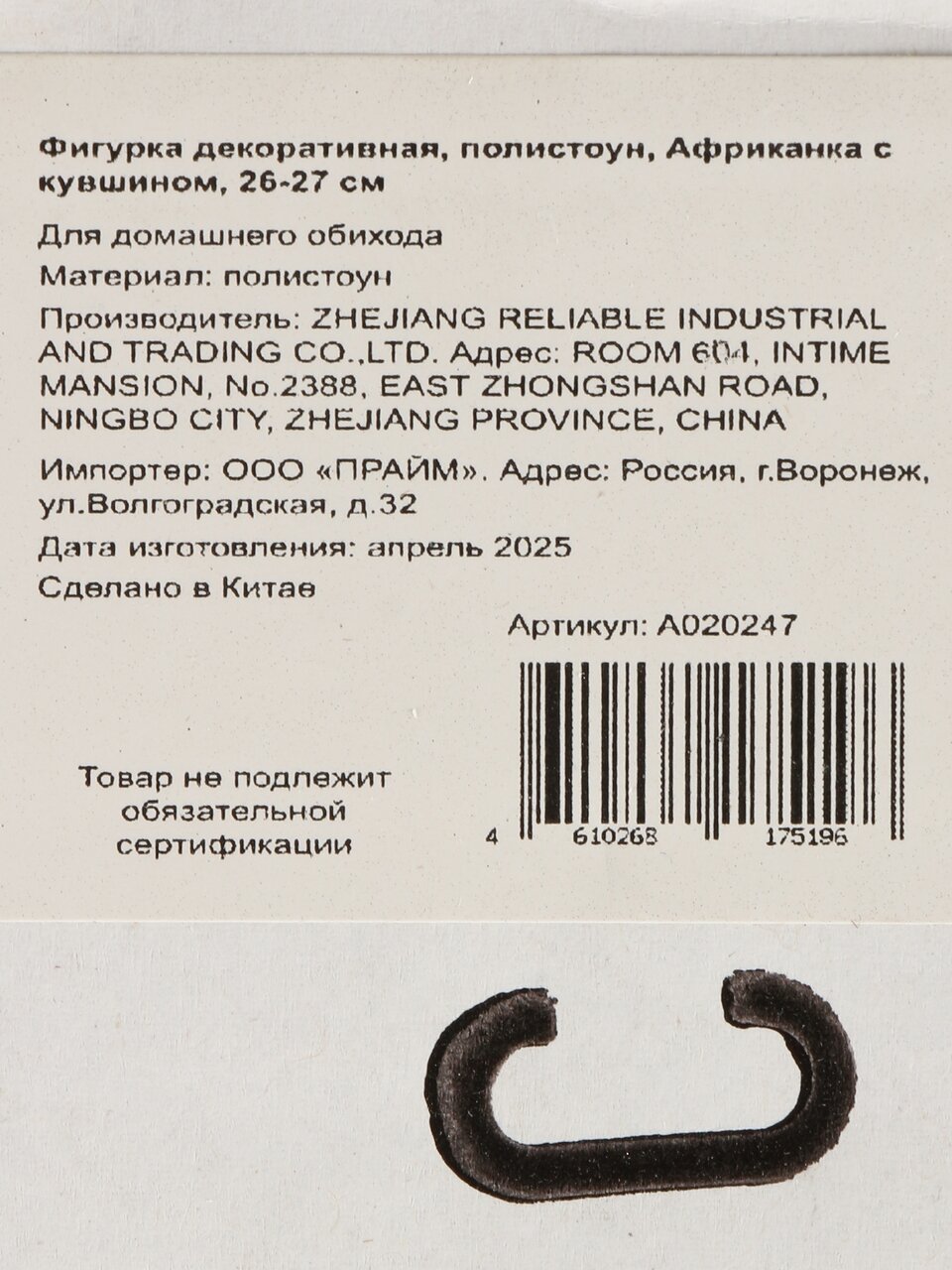 Фигурка декоративная, полистоун, Африканка с кувшином, 26-27 см, A020247