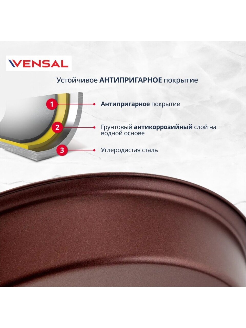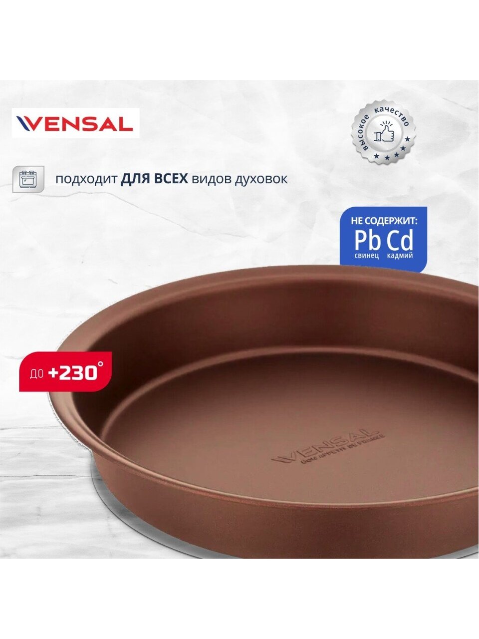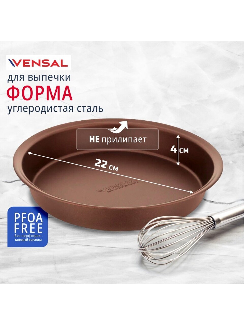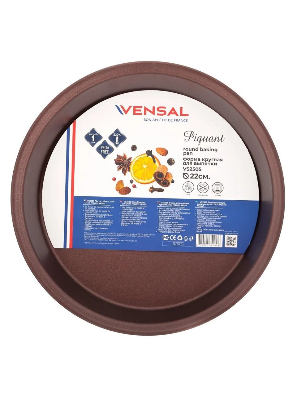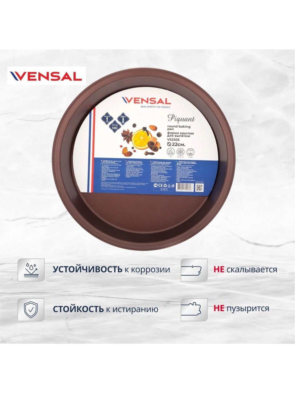 Форма для выпечки из углеродистой стали Vensal Piquant 22×4 см — идеальный выбор для пирогов, курицы и рыбы: антипригарное покрытие, премиум-класс, подходит для посудомойки.