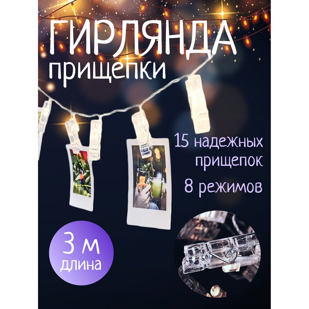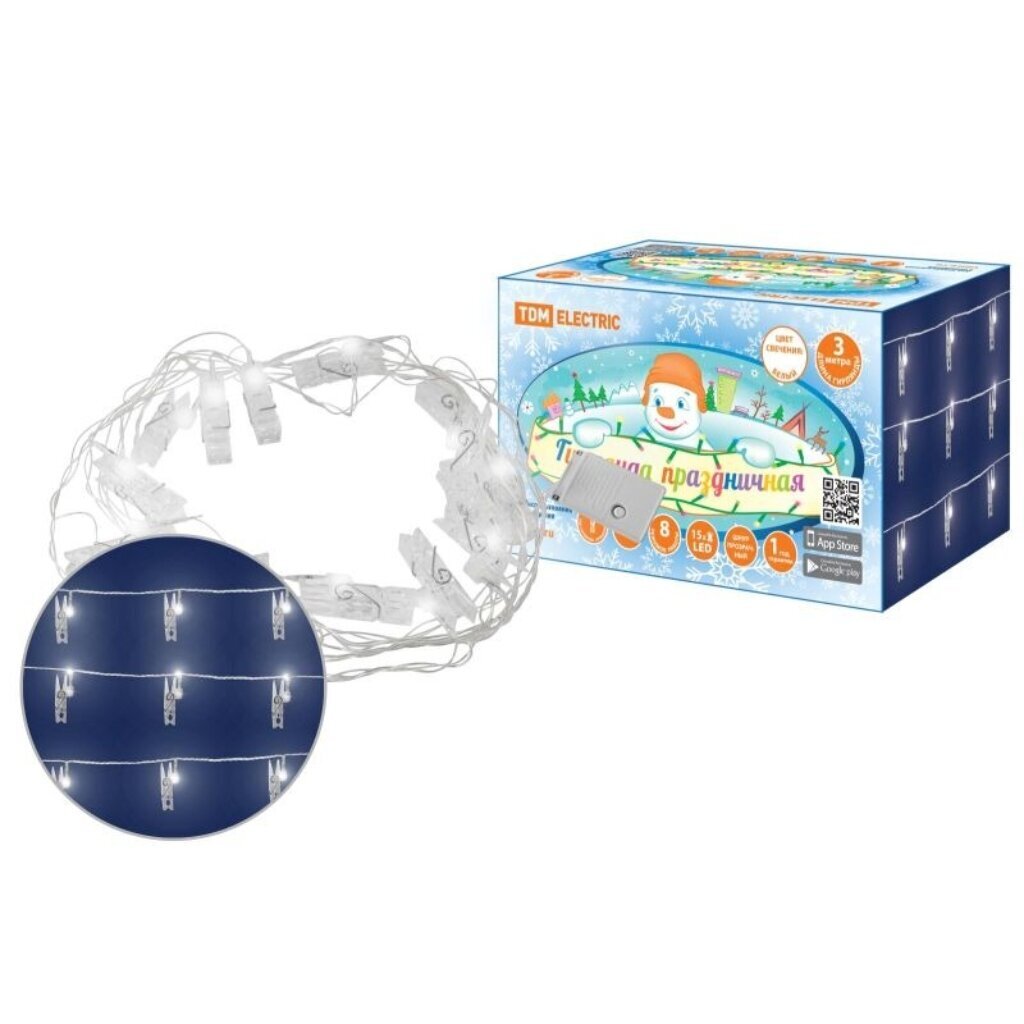 Вы можете приобрести «Гирлянда 15 ламп, 3 м, 8 режимов, Прищепки, TDM Electric, свет белый, прозрачная, в помещении, сетевая, светодиодная, 250 В, IP20, SQ0361-0093» и другие товары в нашем интернет-магазине в Твери по низким ценам и с бесплатным самовывозом.