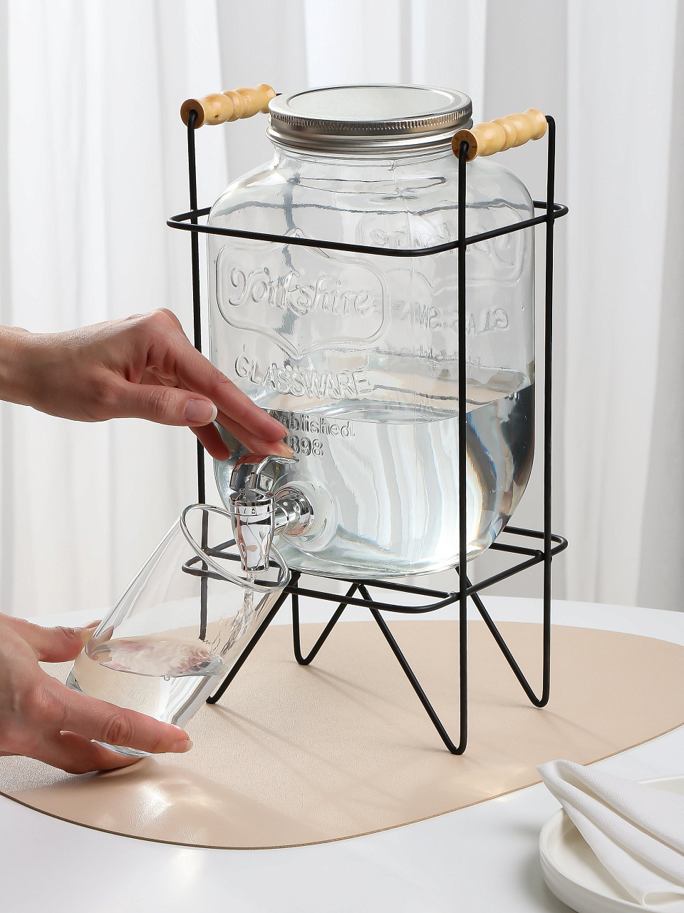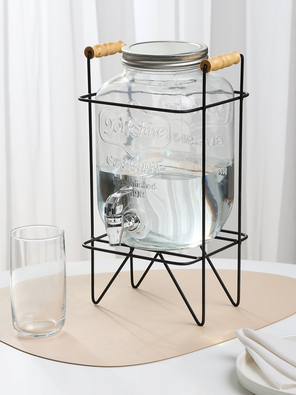 Лимонадница стекло, 4 л, с подставкой, прозрачная, B090058