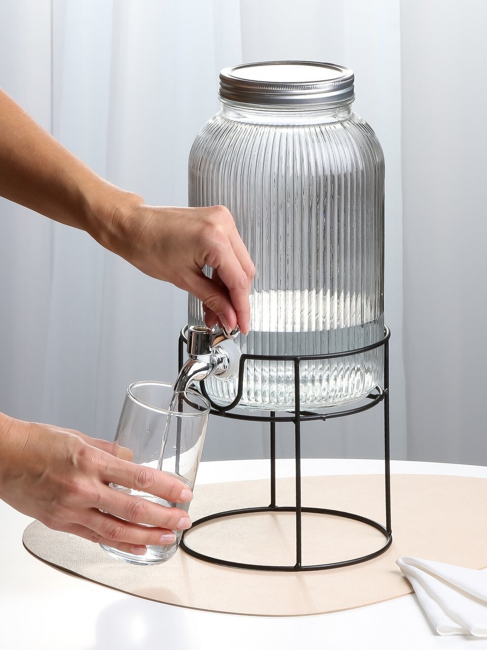 Как использовать лимонадницу? Просто наполните её любимым напитком, добавьте фрукты или лёд — и получите эффектную подачу без лишних хлопот. Подходит ли лимонадница для горячих напитков? Стекло выдерживает температуру до 60°C, но оптимально использовать для холодных и прохладных напитков. Если вы ищете, какой объём выбрать для большой компании — 3.7 литра достаточно для 10-12 порций. В отличие от аналогов, здесь толстое стекло и устойчивое основание, что снижает риск опрокидывания.