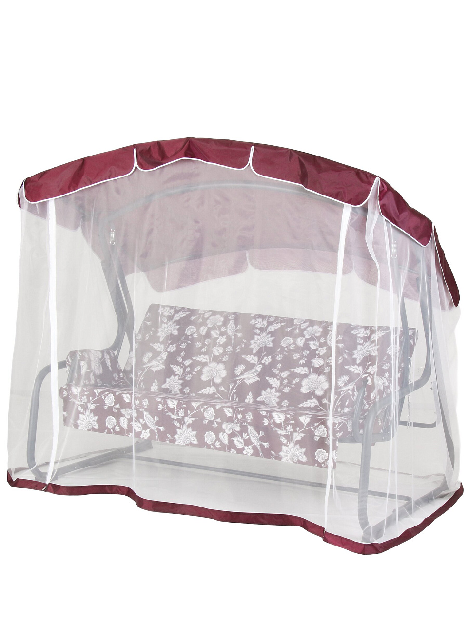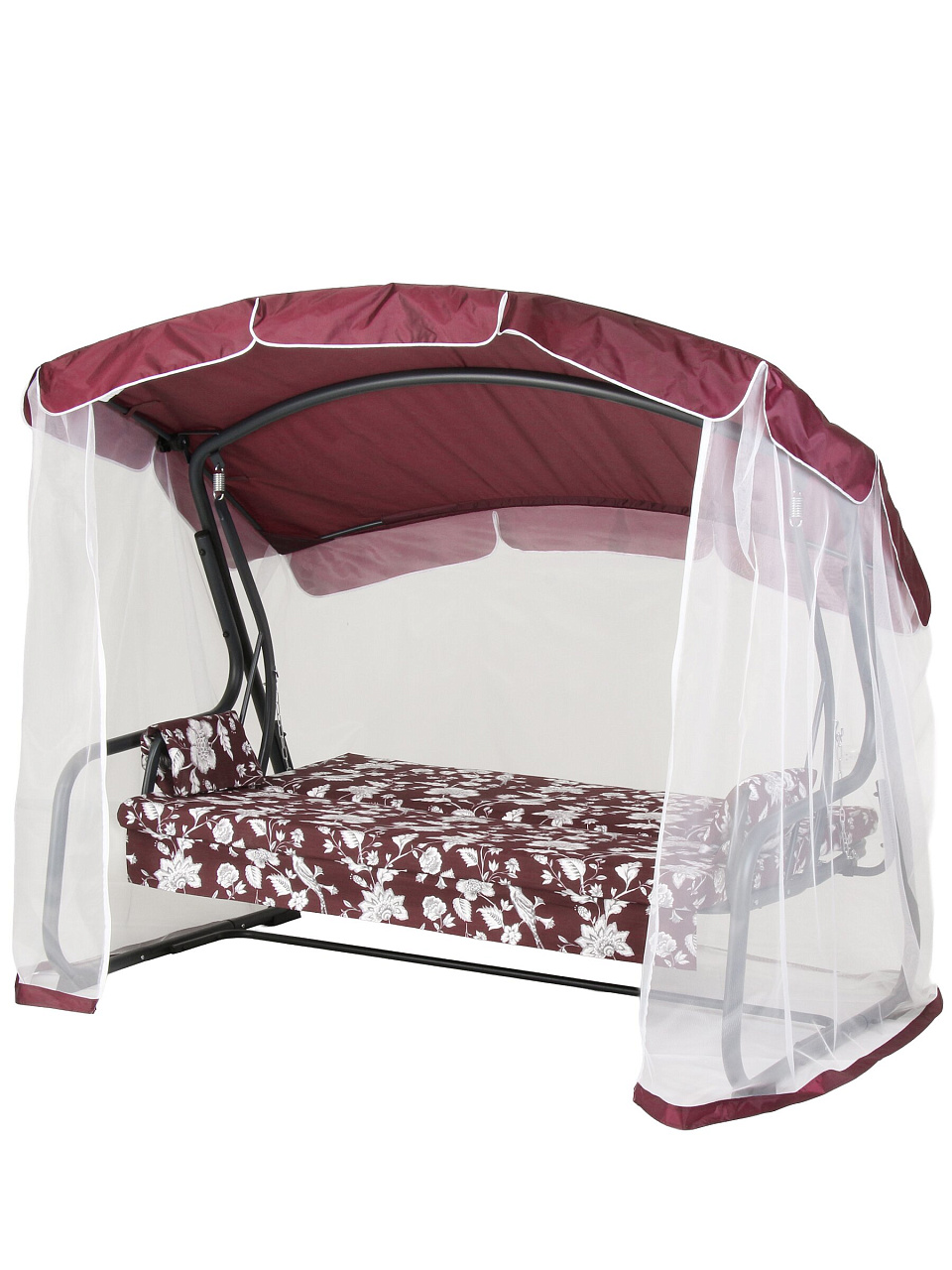 Качели садовые 3-местные Генуя: комфорт для всей семьи, выдерживают до 300 кг, трансформируются в кровать, москитная сетка и стильный бордо — выгодное решение для дачи и сада.
