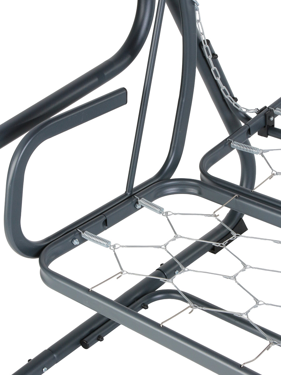 Максимальная нагрузка — 300 кг. Это позволяет использовать качели сразу тремя взрослыми или семьёй с детьми, не опасаясь деформации конструкции.