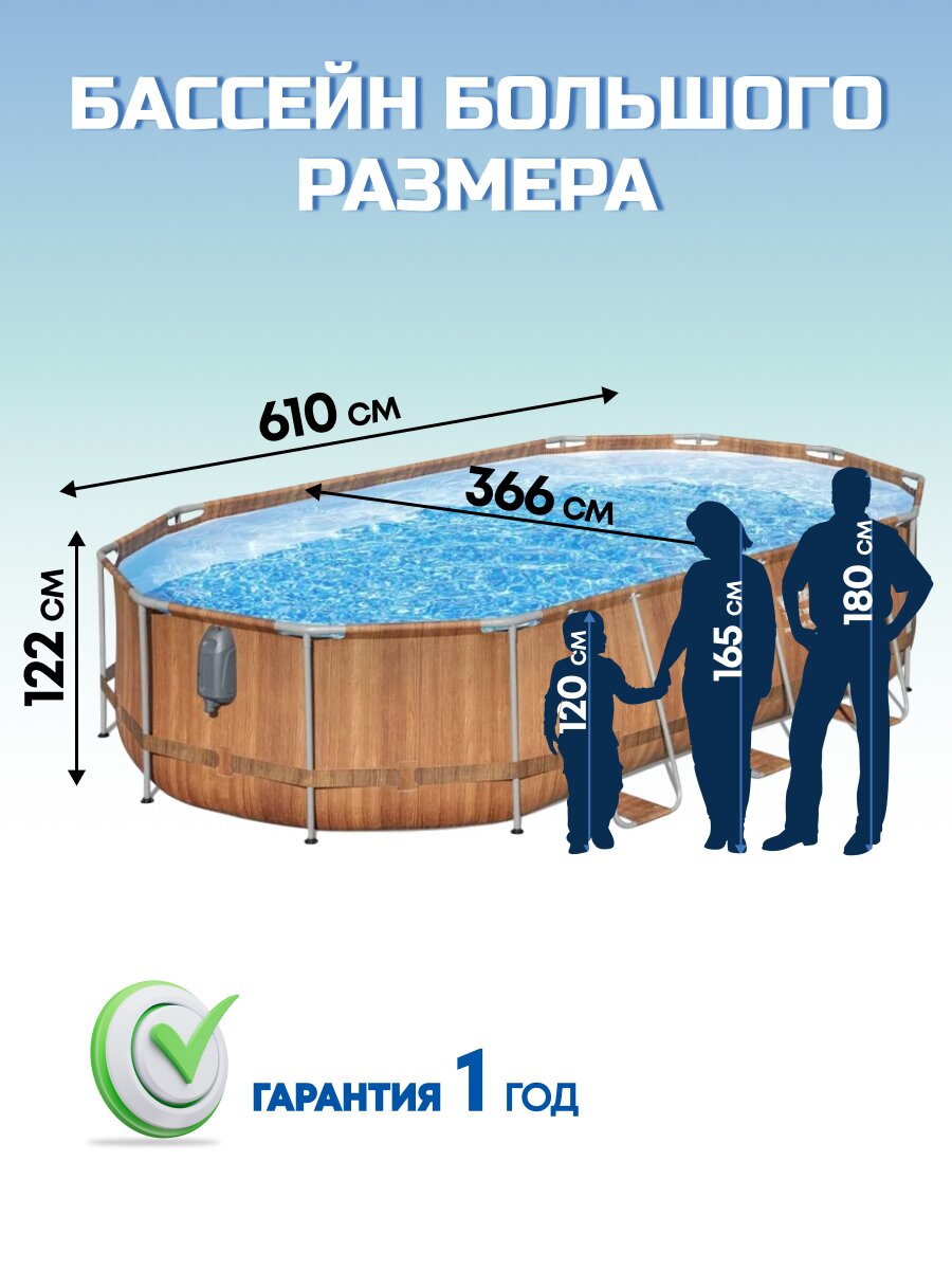 Бассейн каркасный Bestway, 610х366х122 см, Power Steel, 56719, фильтр-насос, лестница, 20241 л