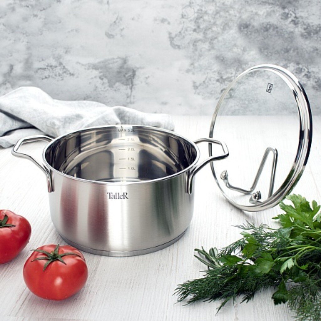 Кастрюля Taller Инесс 1.5 л из нержавеющей стали 18/10 с капсульным дном: долговечность, премиум-качество и универсальность для любых плит.