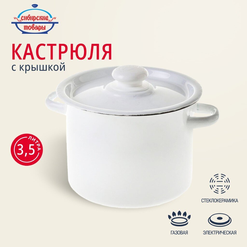 Эмалированная кастрюля 3.5 л «Сибирские товары» — универсальное решение для кухни и дачи: прочная сталь, стильный дизайн, оптимальный объём для семьи.