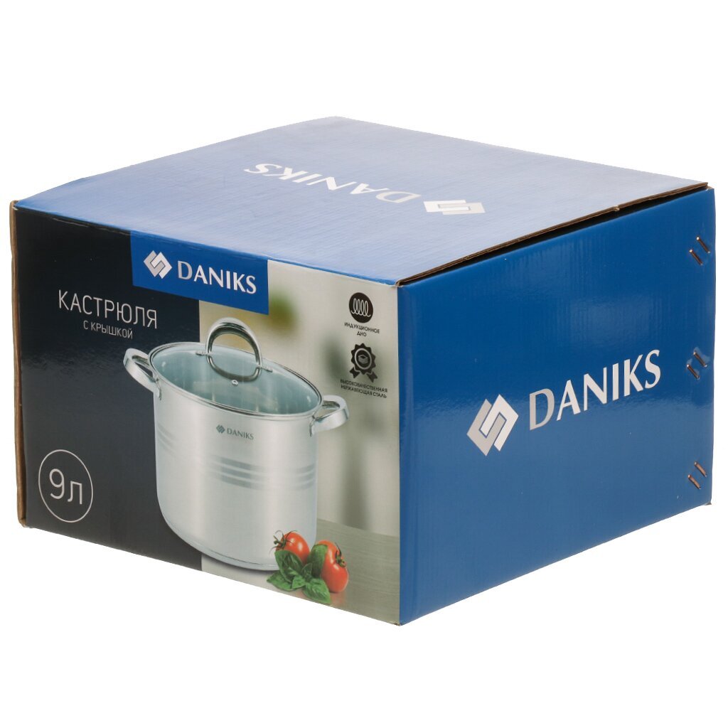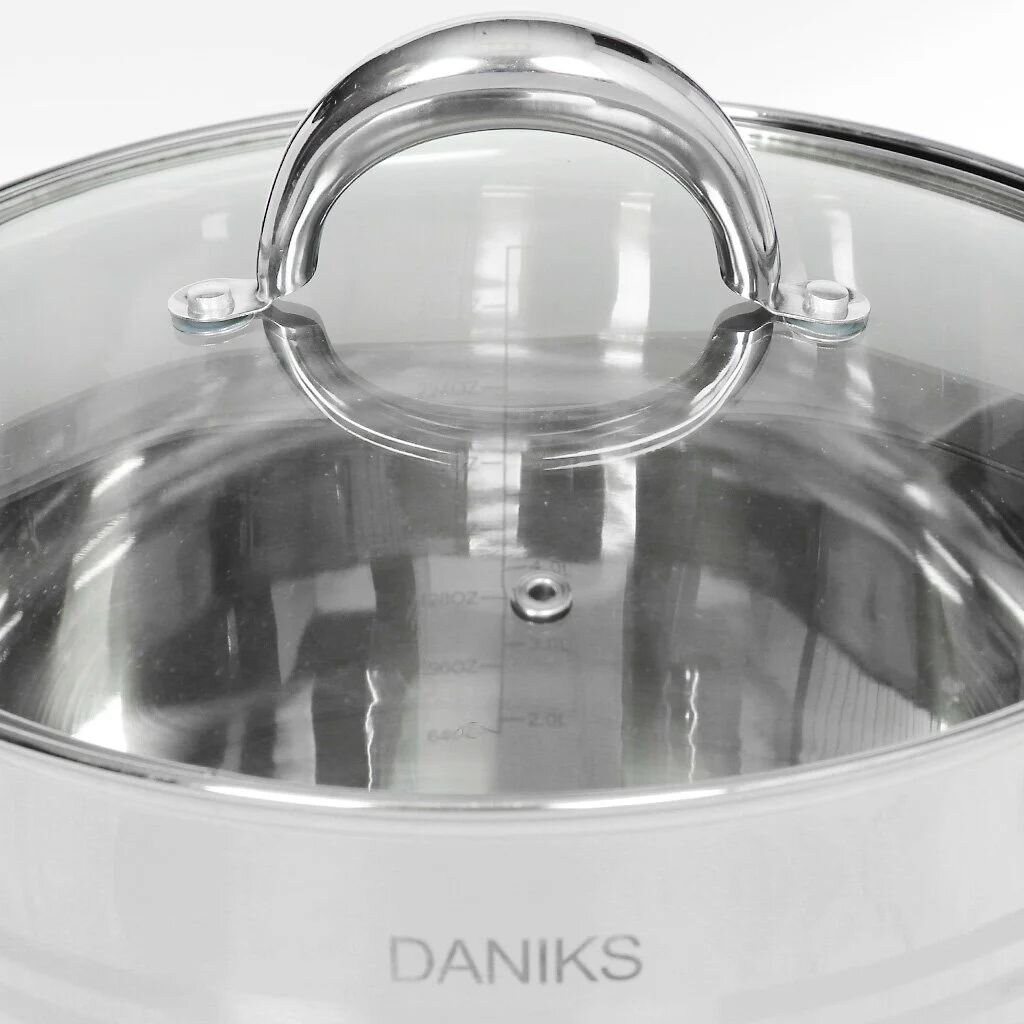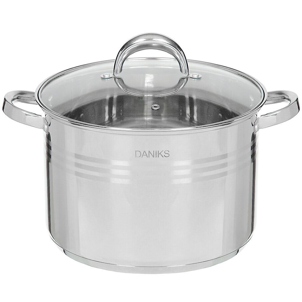 Кастрюля Daniks 10 л из нержавеющей стали с мерной шкалой и стеклянной крышкой — оптимальный выбор для дома, дачи и профессиональной кухни. Готовьте суп, пельмени или макароны без хлопот благодаря универсальной совместимости с индукцией и газом.