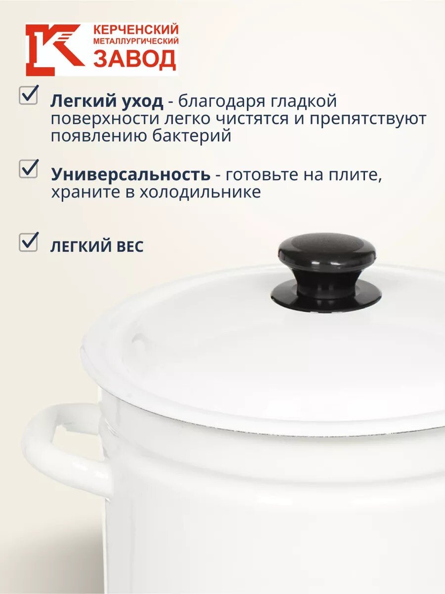 Эмалированная сталь не впитывает запахи, устойчива к коррозии, проста в уходе и безопасна для приготовления любых блюд — от супов до компотов.