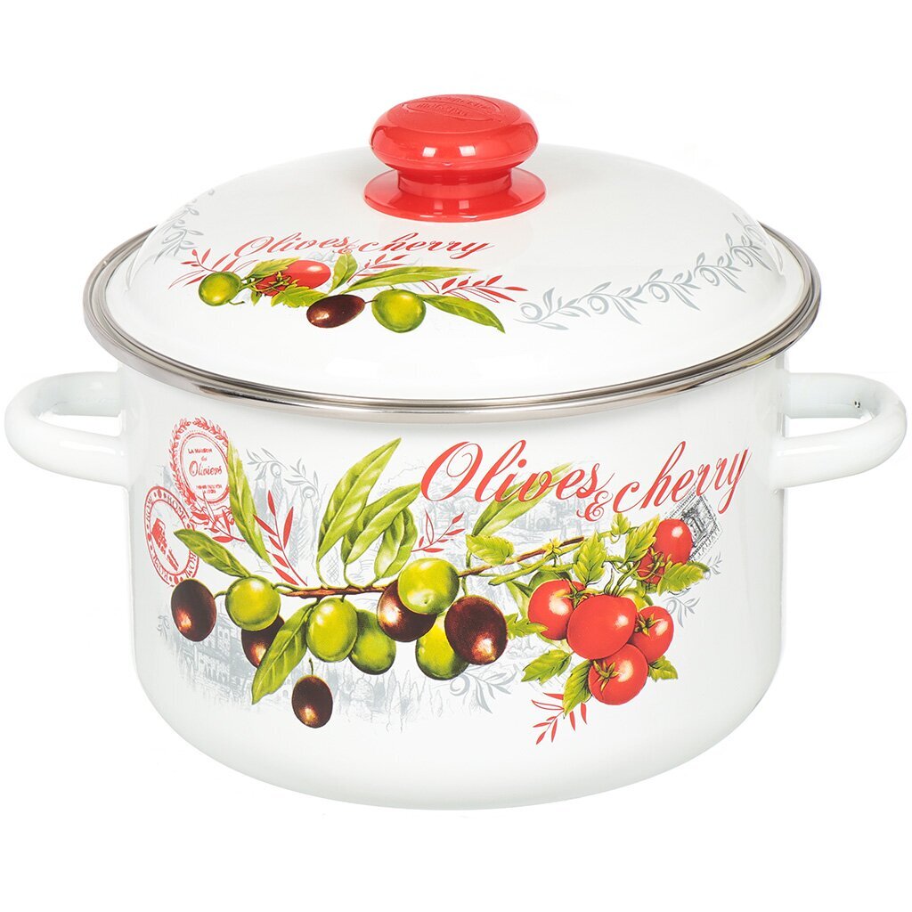 Эмалированная кастрюля 4 л с крышкой из стали — универсальное решение для дома и дачи: подходит для индукции, легко моется, стильный дизайн «Оливки и черри».
