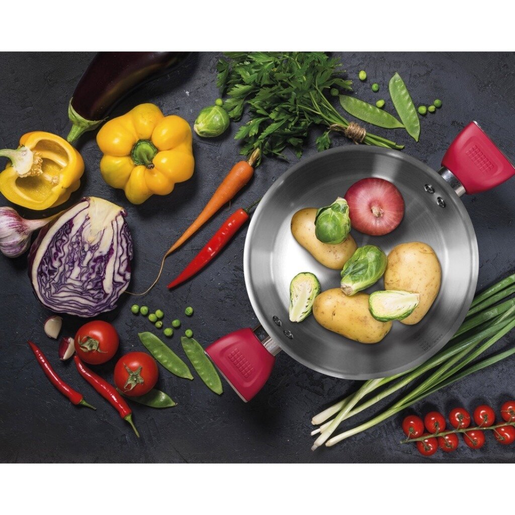 Материал устойчив к воздействию кислот, щелочей и не вступает в реакцию с компонентами пищи. Утолщенное капсулированное дно равномерно прогревается по всей площади, а также обладает термоаккумулирующими свойствами, что сокращает время приготовления блюда на 30%.