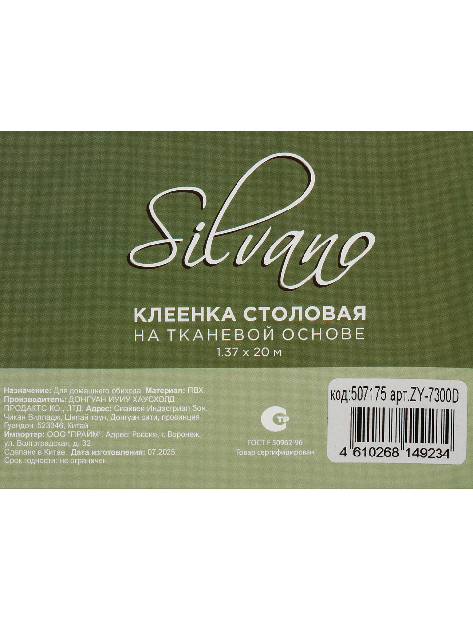 Клеенка Silvano, 1.37х20 м, ПВХ на тканевой основе, 3D, ZY-7300D