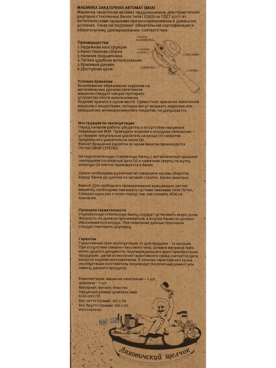 Ключ закаточный Ляховичский Щелчок: автоматическая герметизация банок без усилий. Надежный помощник для домашних заготовок с гарантией качества.