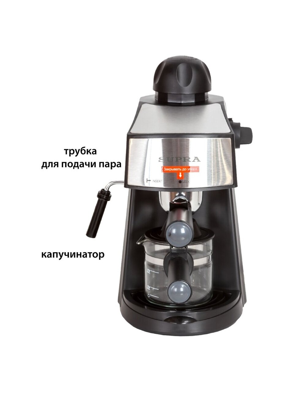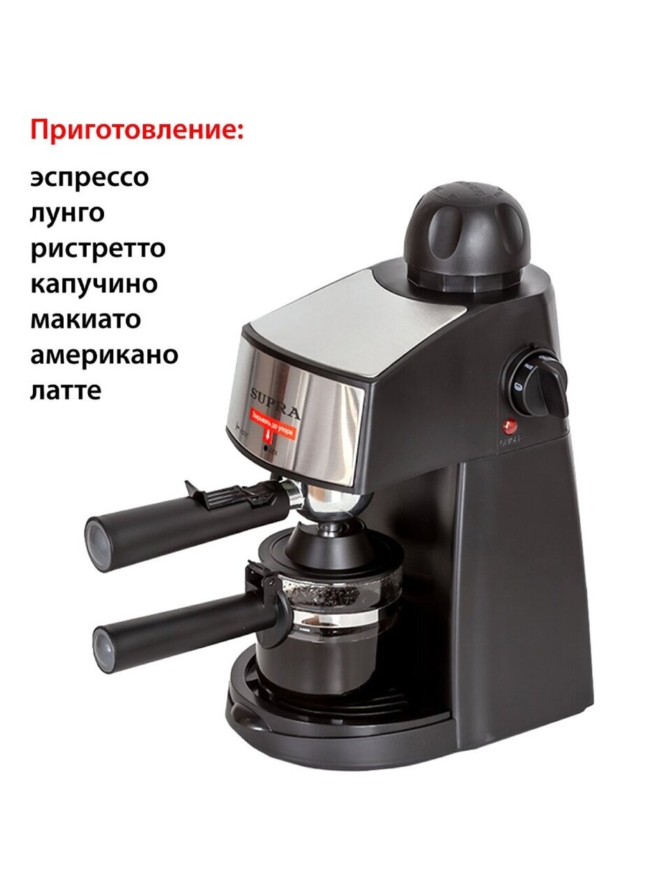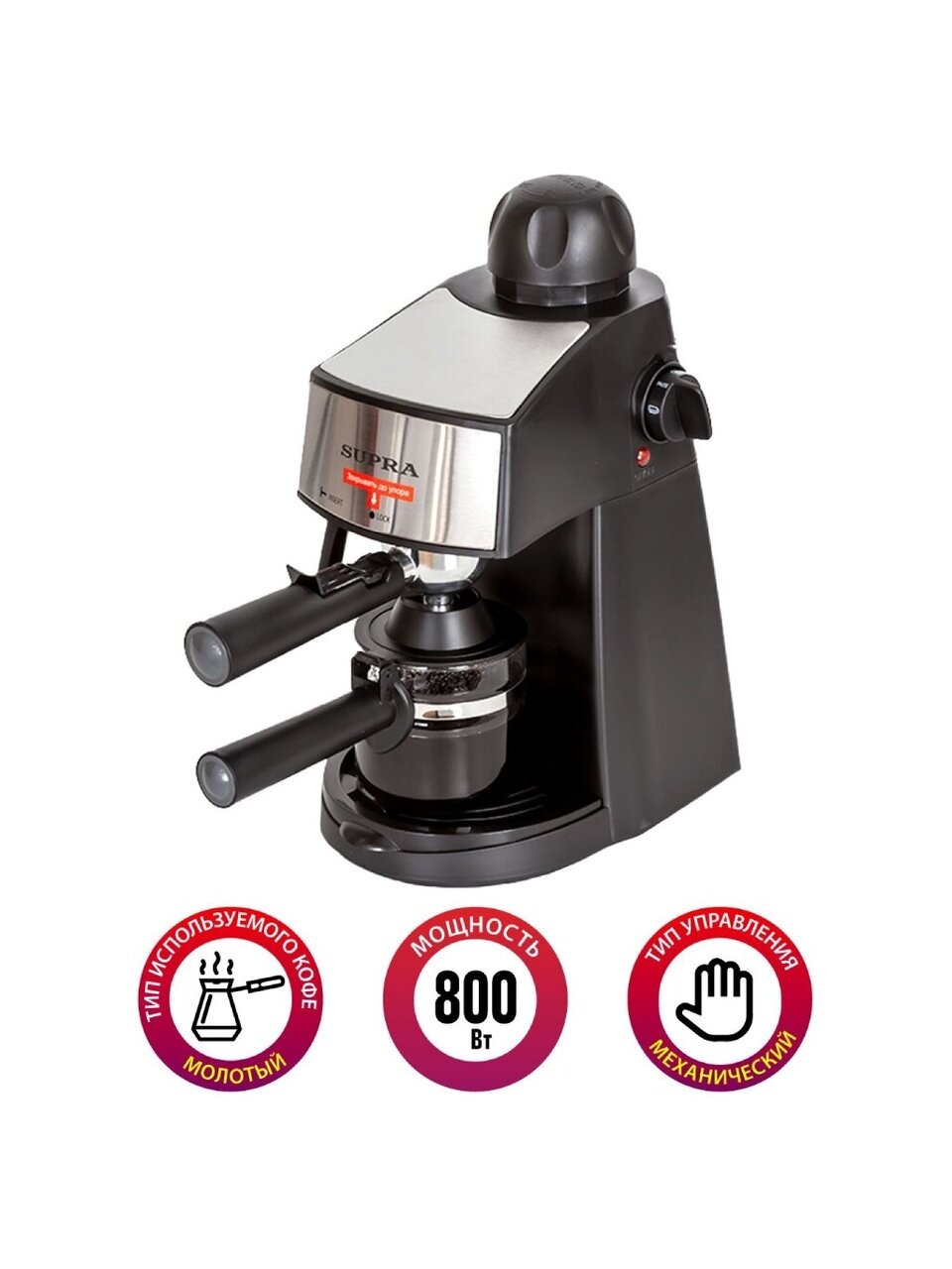 Вы можете приобрести «Кофеварка электрическая, рожковая, Supra, CMS-1005, 800 Вт, 3.5 бар» и другие товары в нашем интернет-магазине в Казани по низким ценам и с бесплатным самовывозом.