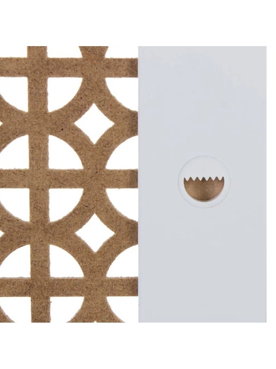 Экран изготовлен из прочного МДФ, что обеспечивает долговечность и устойчивость к повседневному использованию. Белый цвет визуально расширяет пространство и делает комнату светлее, создавая атмосферу уюта и комфорта. Размер 600х600 мм позволяет использовать экран для большинства стандартных радиаторов, обеспечивая надежную защиту и эстетичный внешний вид.