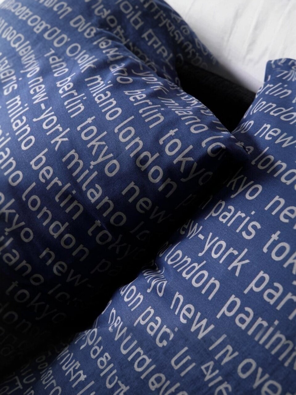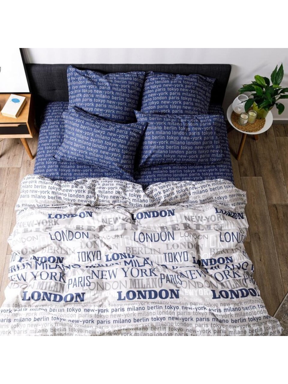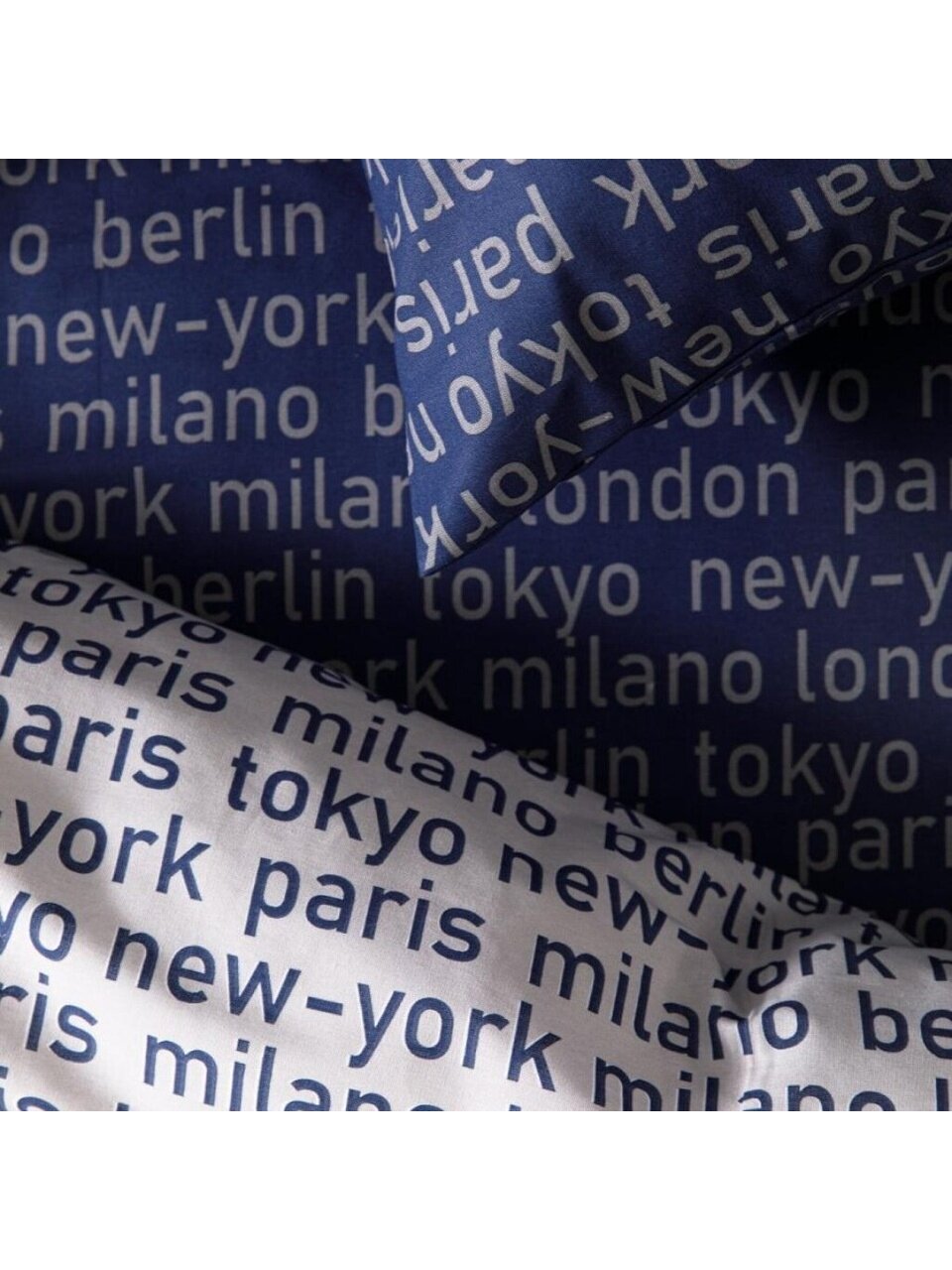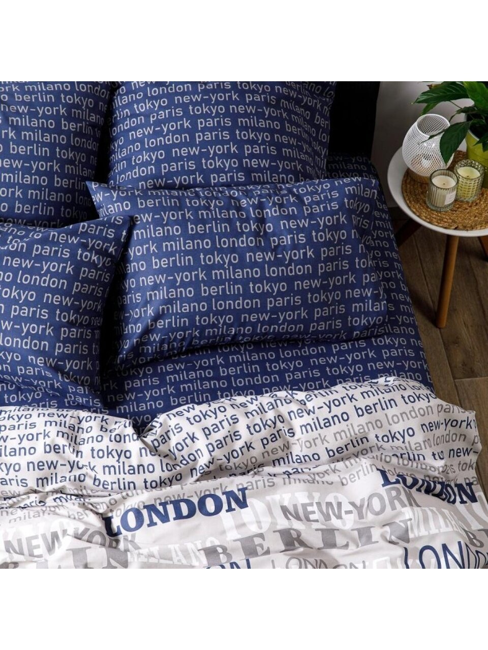 Постельное белье евро «Ночь нежна Милан»: 100% хлопок, размер 200х215 см, синий дизайн с надписями — комфорт и стиль для вашего сна по выгодной цене.