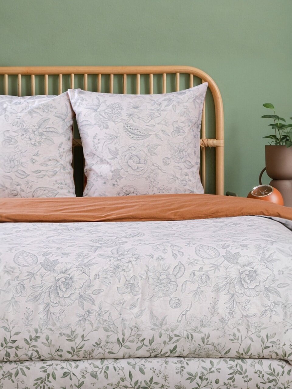 Сатин из 100% хлопка — натуральный, дышащий материал. Рекомендуется машинная стирка при 40°C, белье не требует особого ухода и сохраняет форму и цвет после многократных стирок.