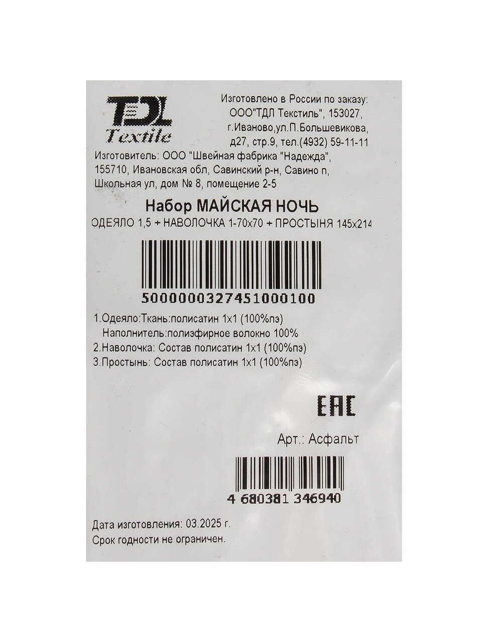 Вы можете приобрести «Постельное белье 1.5-спальное, простыня 145х214 см, 1 наволочка 70х70 см, Майская ночь, полисатин, одеяло 145х215 см, Асфальт» и другие товары в нашем интернет-магазине в Армавире по низким ценам и с бесплатным самовывозом.