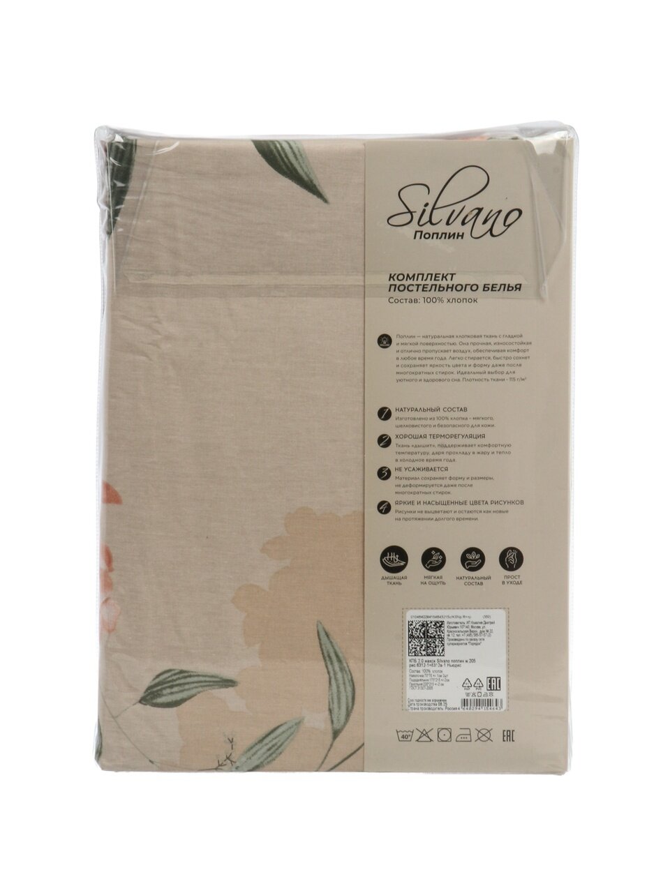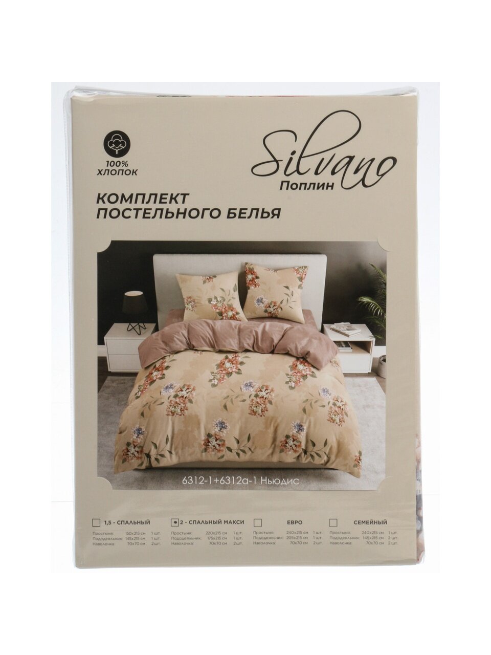 Постельное белье 2-спальное Silvano Ньюдис из поплина: бежевый комплект 215х220 см с цветочным дизайном — уют, долговечность и идеальный подарок.