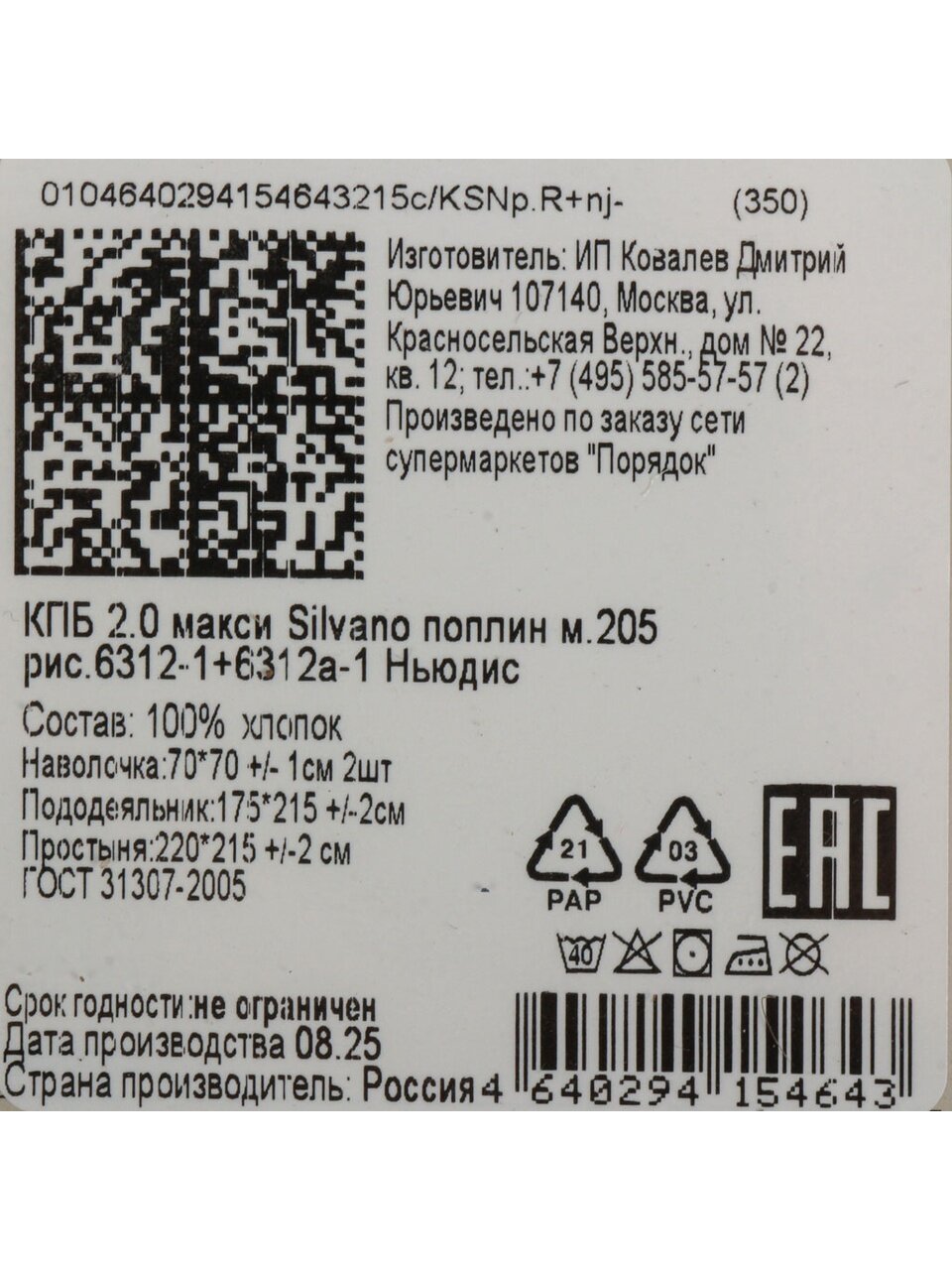 Какой размер простыни и пододеяльника в комплекте Silvano Ньюдис?
