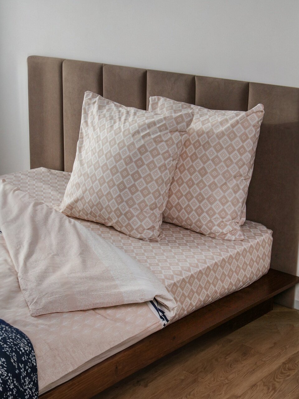 Комплект выполнен из 100% хлопкового поплина — плотной и долговечной ткани, которая хорошо держит форму, не вызывает раздражения и подходит для регулярного использования.