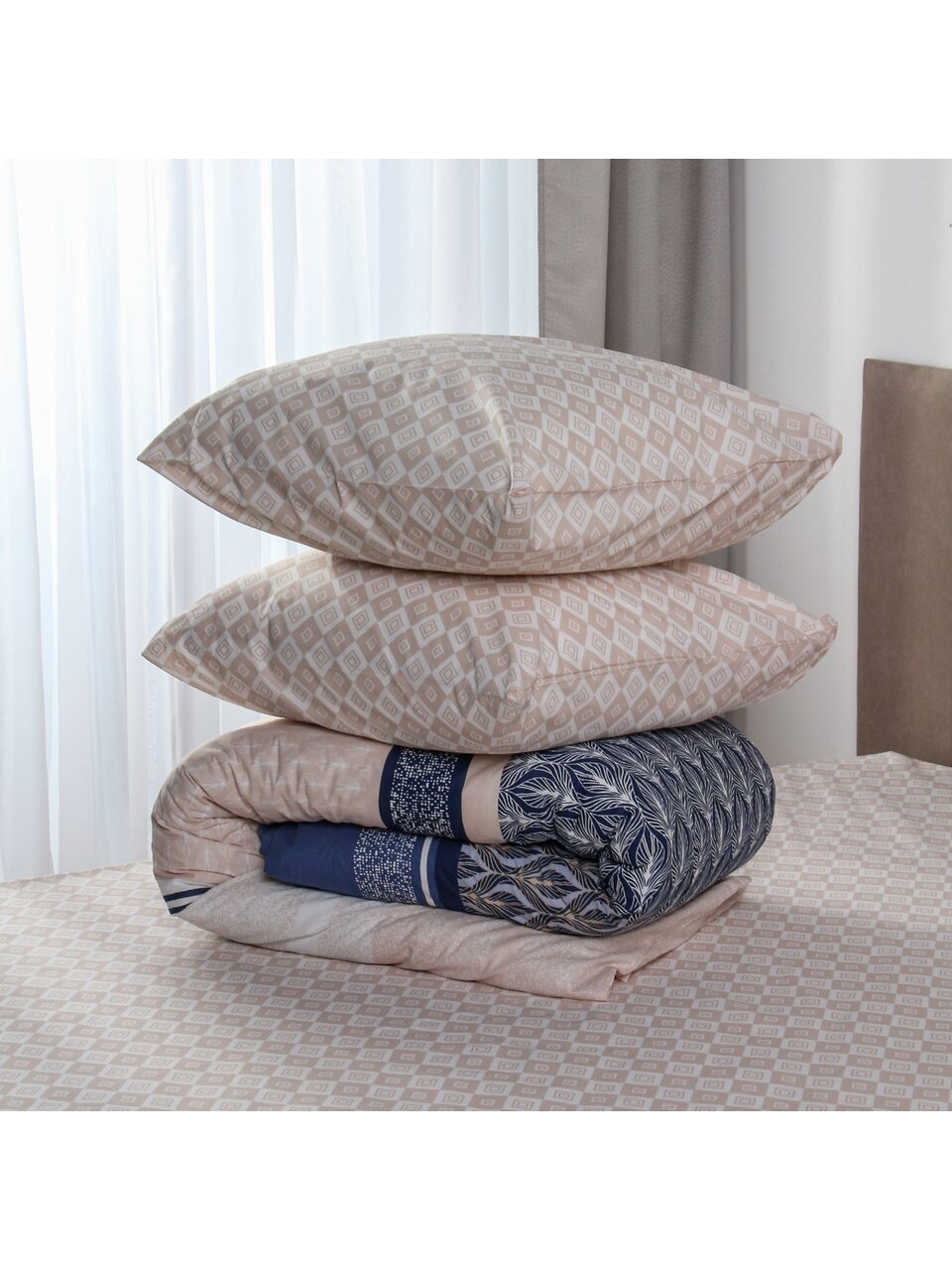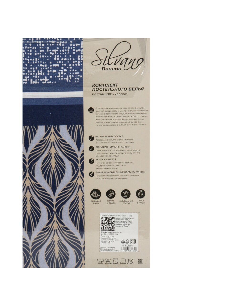 Постельное белье Silvano Polo семейное: 100% хлопок-поплин, 5 предметов, синий орнамент — идеальный подарок для уюта и крепкого сна.