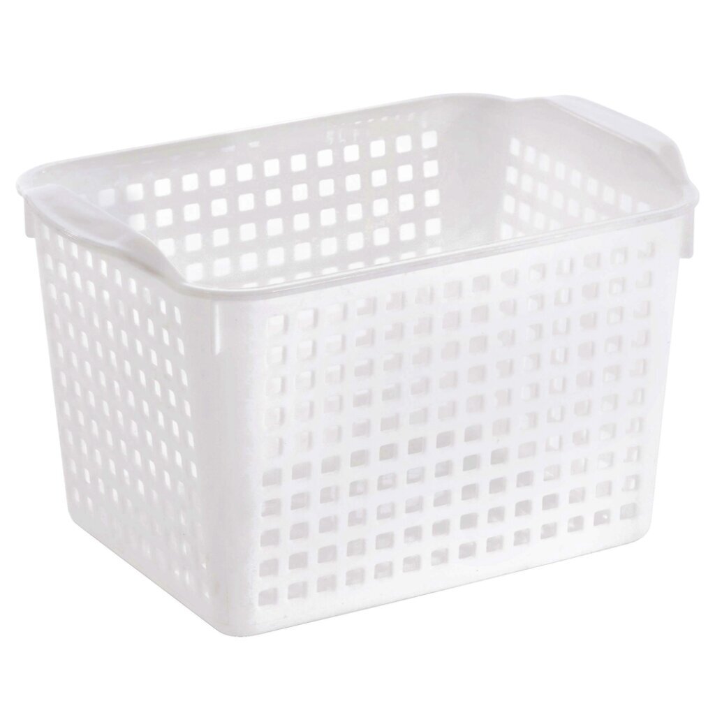 Емкость из пищевого пластика для хранения и переноски мелких аксессуаров и продуктов питания. Оптимальна для косметики и средств личной гигиены, продуктов питания и медикаментов, канцелярских товаров, товаров для творчества и многого другого. С ручками обтекаемой формы корзину удобно перемещать. Перфорация на корпусе универсальна для самых разнообразных стилей интерьера и делает изделия данной серии легкими и проветриваемыми.