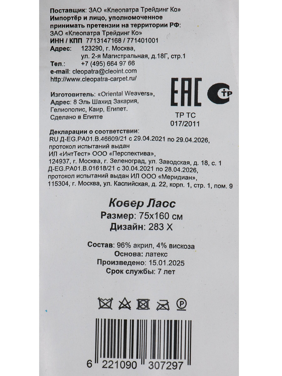 - Удобные размеры 75×160 см — идеально для прихожей, спальни, гостиной; форма прямоугольник подходит для зонирования пространства.