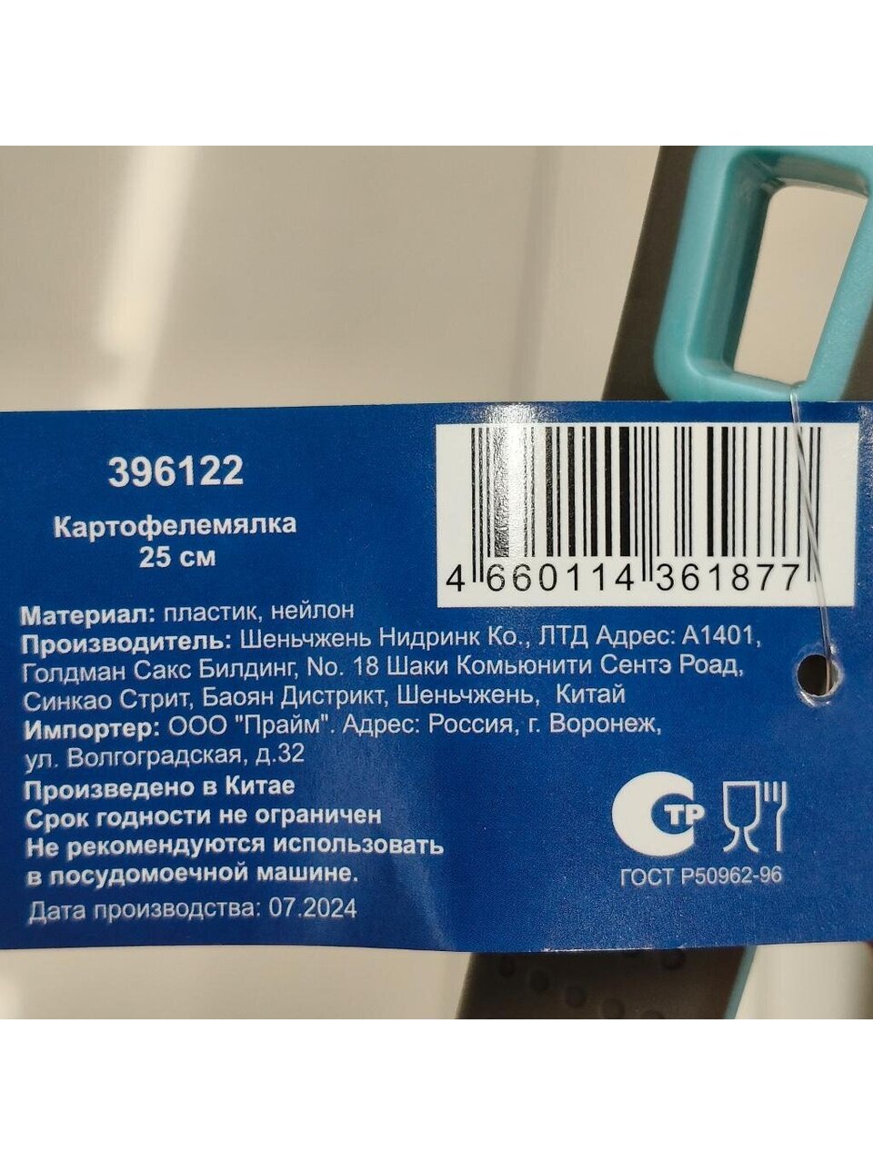 Картофелемялка изготовленная из прочного и безопасного материала, станет верным помощников каждой хозяйке. Рабочая поверхность - нейлон. Изделие предназначено для посуды с антипригарным покрытием, не нагревается и удобна в использовании.