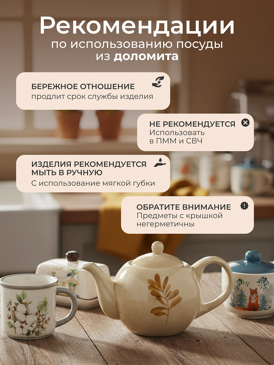 Посуда изготовлена из доломита - это толстостенная, но при этом необычайно легкая керамика, в состав которой добавлен природный минерал доломит.