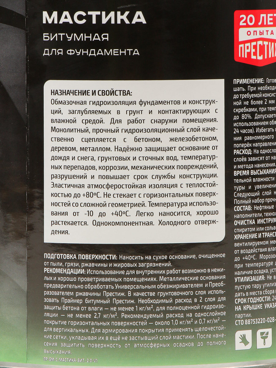 Выбирайте мастику Престиж и получите надежную гидроизоляцию с гарантией качества. Закажите прямо сейчас — выгодная цена, быстрая доставка и консультация эксперта по применению!