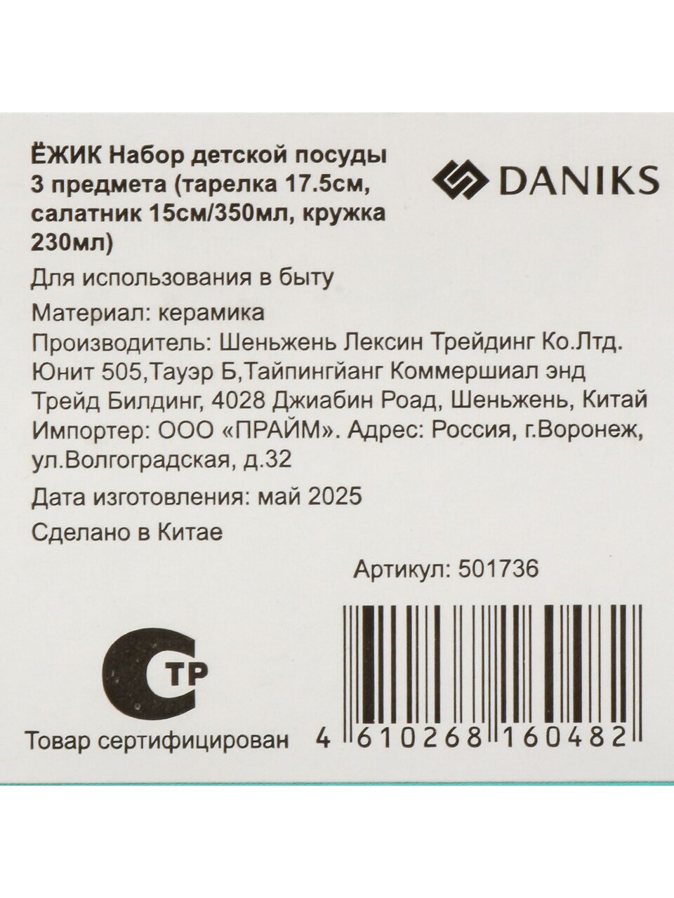 Набор посуды Daniks «Ёжик» из керамики — это оптимальный выбор для тех, кто ищет недорогой, но долговечный комплект для ребёнка или в подарок. Керамика сохраняет температуру блюд, устойчива к бытовым нагрузкам и не впитывает запахи. Благодаря плотной глазури, посуда легко очищается и не тускнеет со временем. Если вы ищете, какую посуду выбрать для дачи или дома, обратите внимание на этот комплект: он не боится перепадов температур и подходит для частого использования.