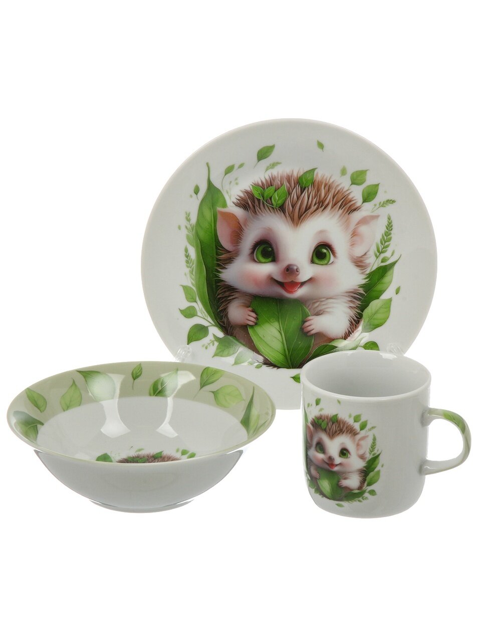 Яркий набор посуды Daniks «Ёжик» — 3 предмета для дома и дачи: идеальный подарок детям, безопасен для СВЧ и посудомойки, в стильной упаковке.