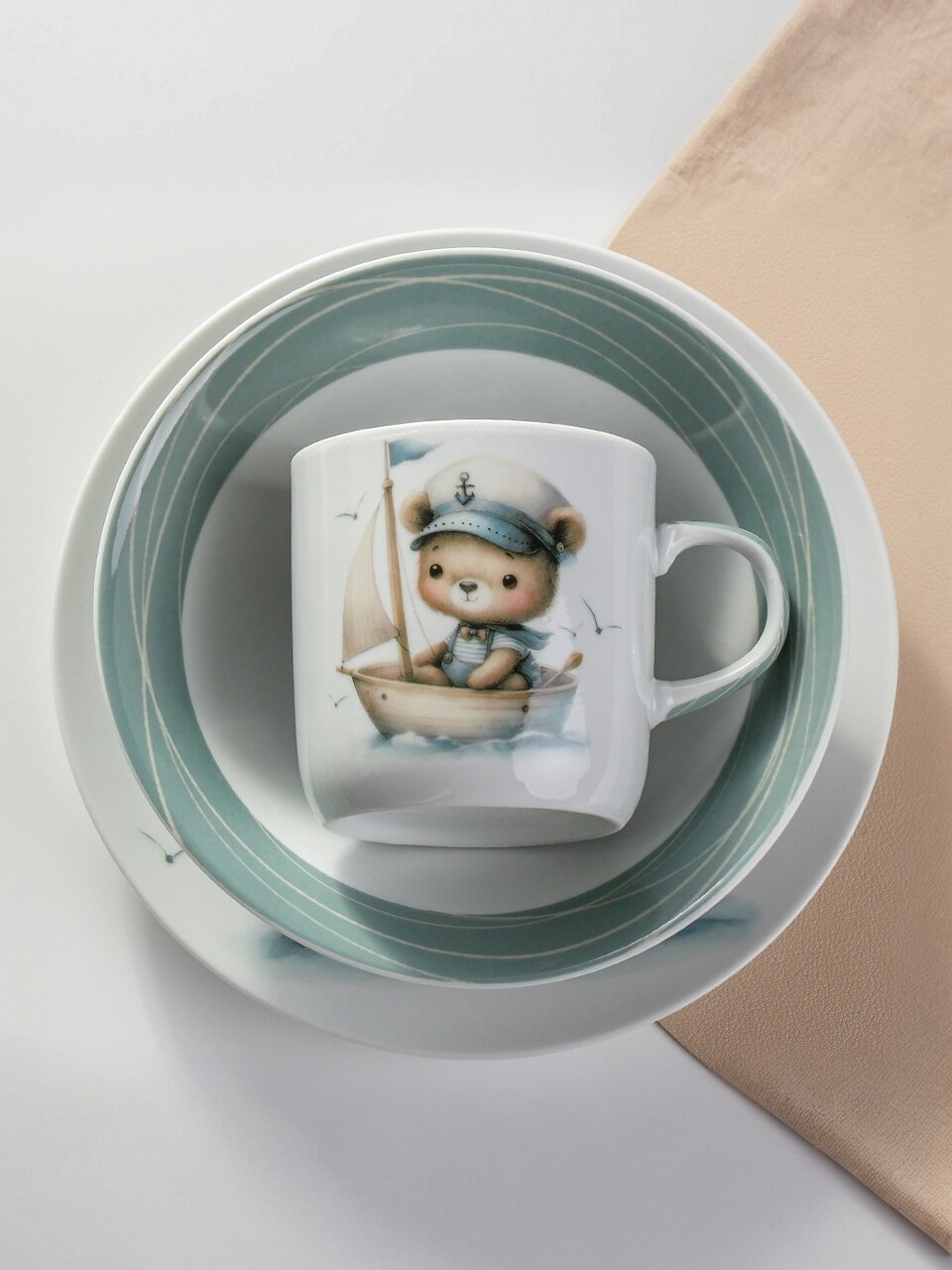 Набор керамической посуды Daniks «Смелый капитан», 3 предмета: идеальный подарок для мальчика, безопасен для СВЧ и посудомоечной машины, яркий дизайн.