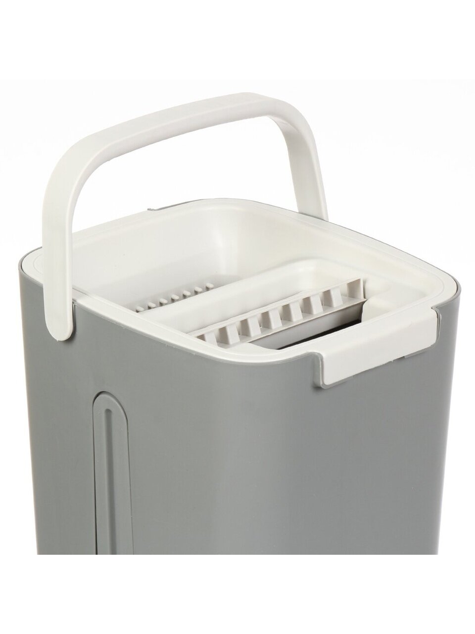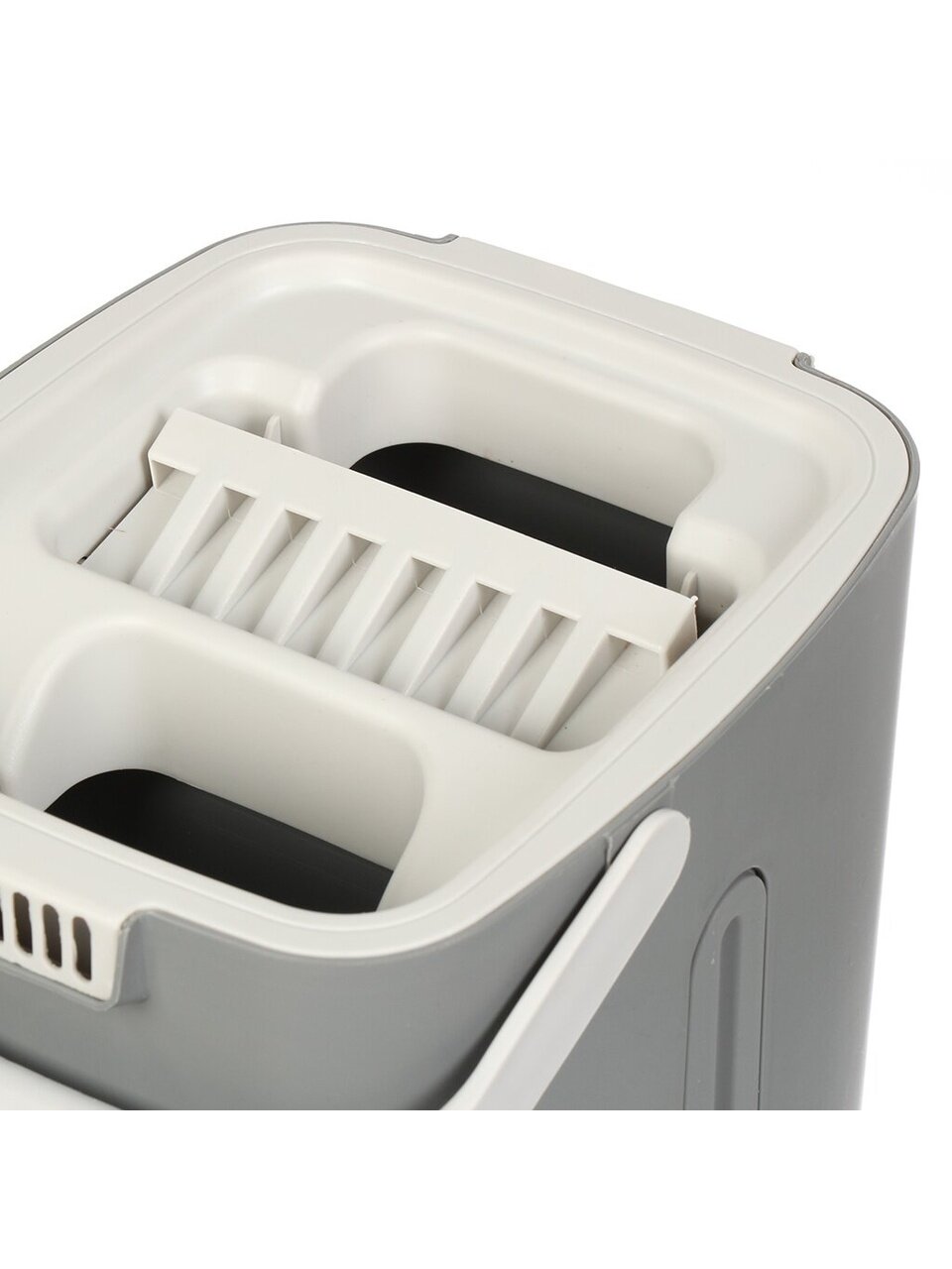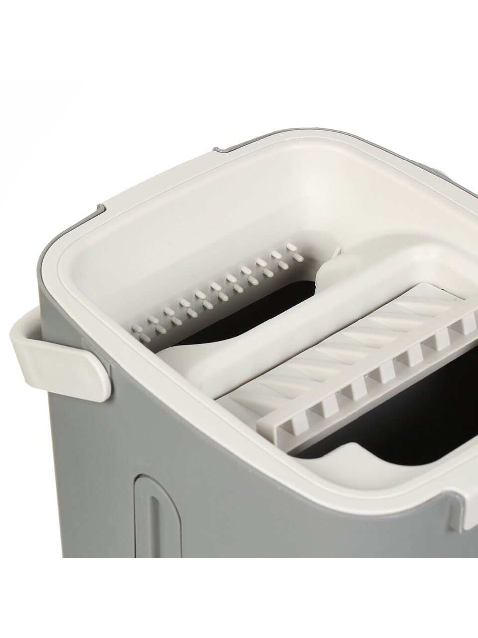 - удобное ведро с функцией отжима: позволяет быстро и легко отжимать швабру, не прилагая лишних усилий;