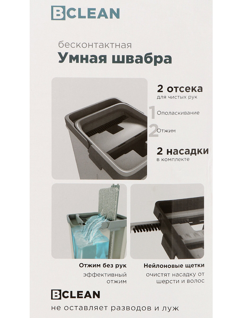 Набор для уборки, ведро и швабра с отжимом, Bclean, A260016