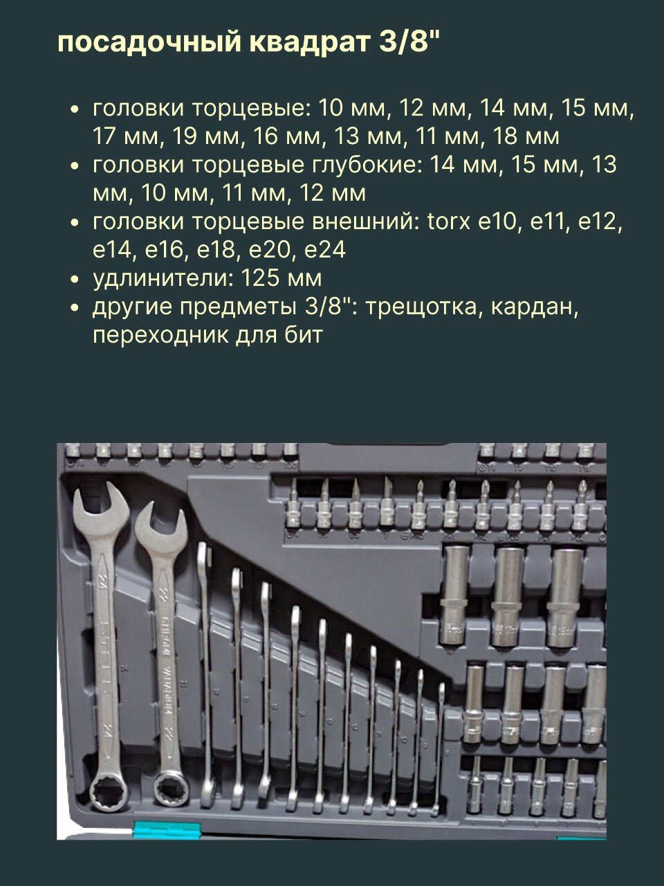 - Другие предметы 3/8": трещотка, кардан, переходник для бит