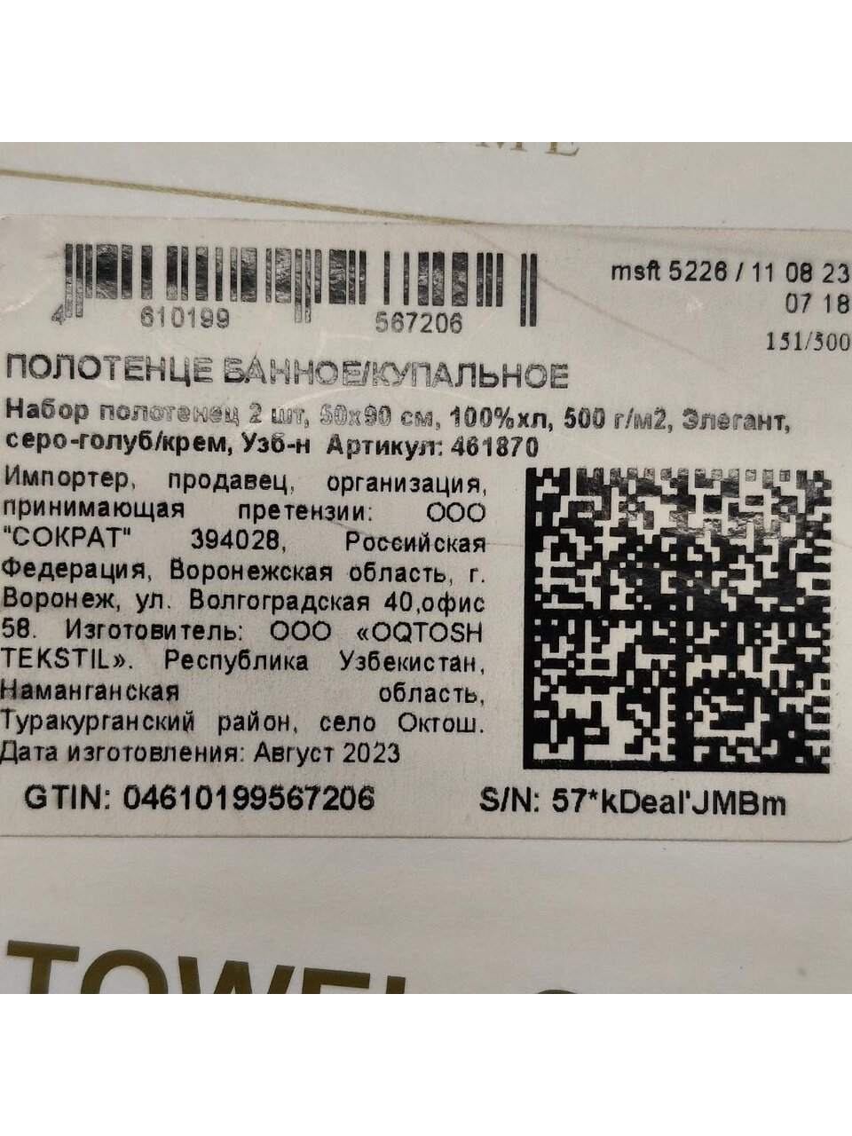 Вы можете приобрести «Набор полотенец 2 шт, 50х90 см, 100% хлопок, 500 г/м2, Элегант, серо-голубой-кремовый, Узбекистан» и другие товары в нашем интернет-магазине в Санкт-Петербургe по низким ценам и с бесплатным самовывозом.